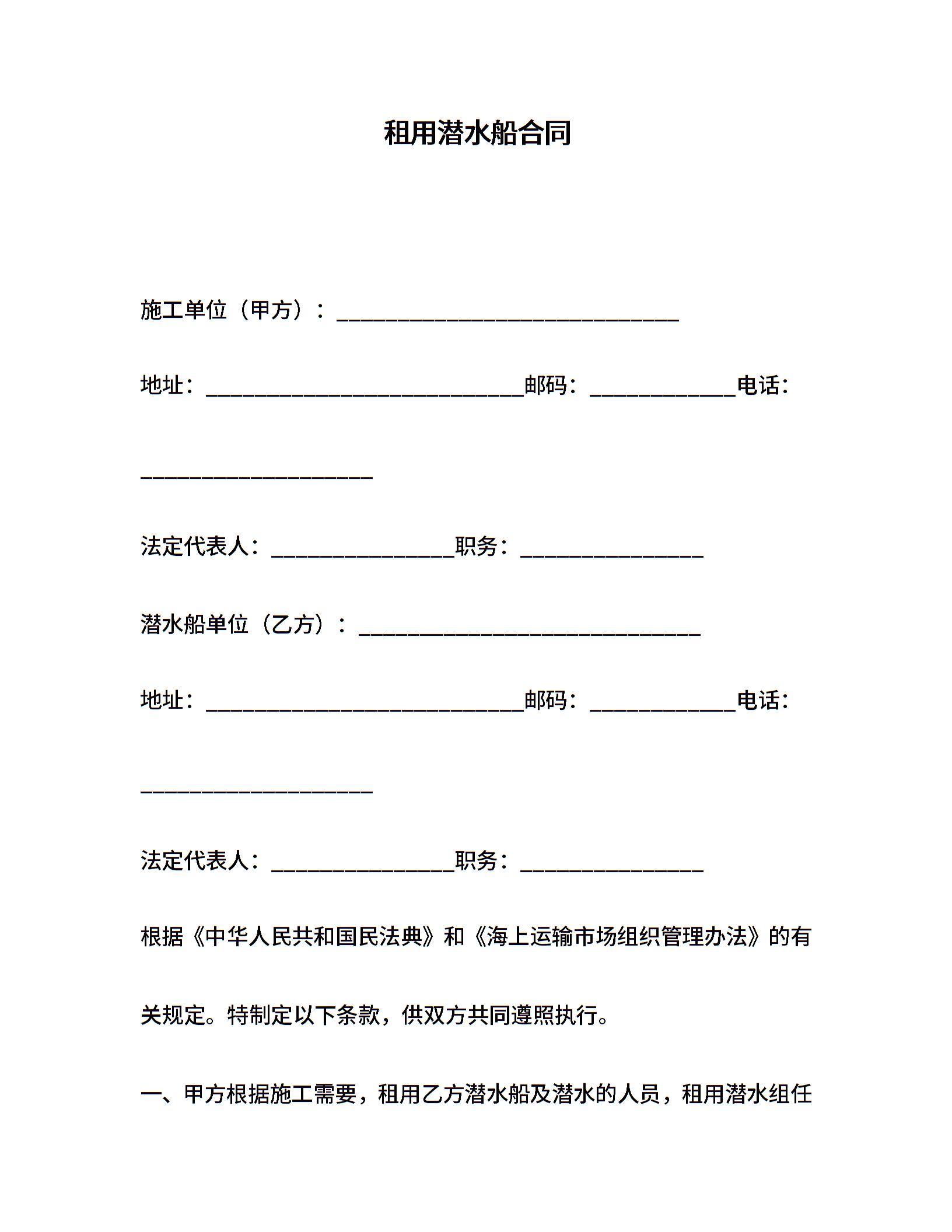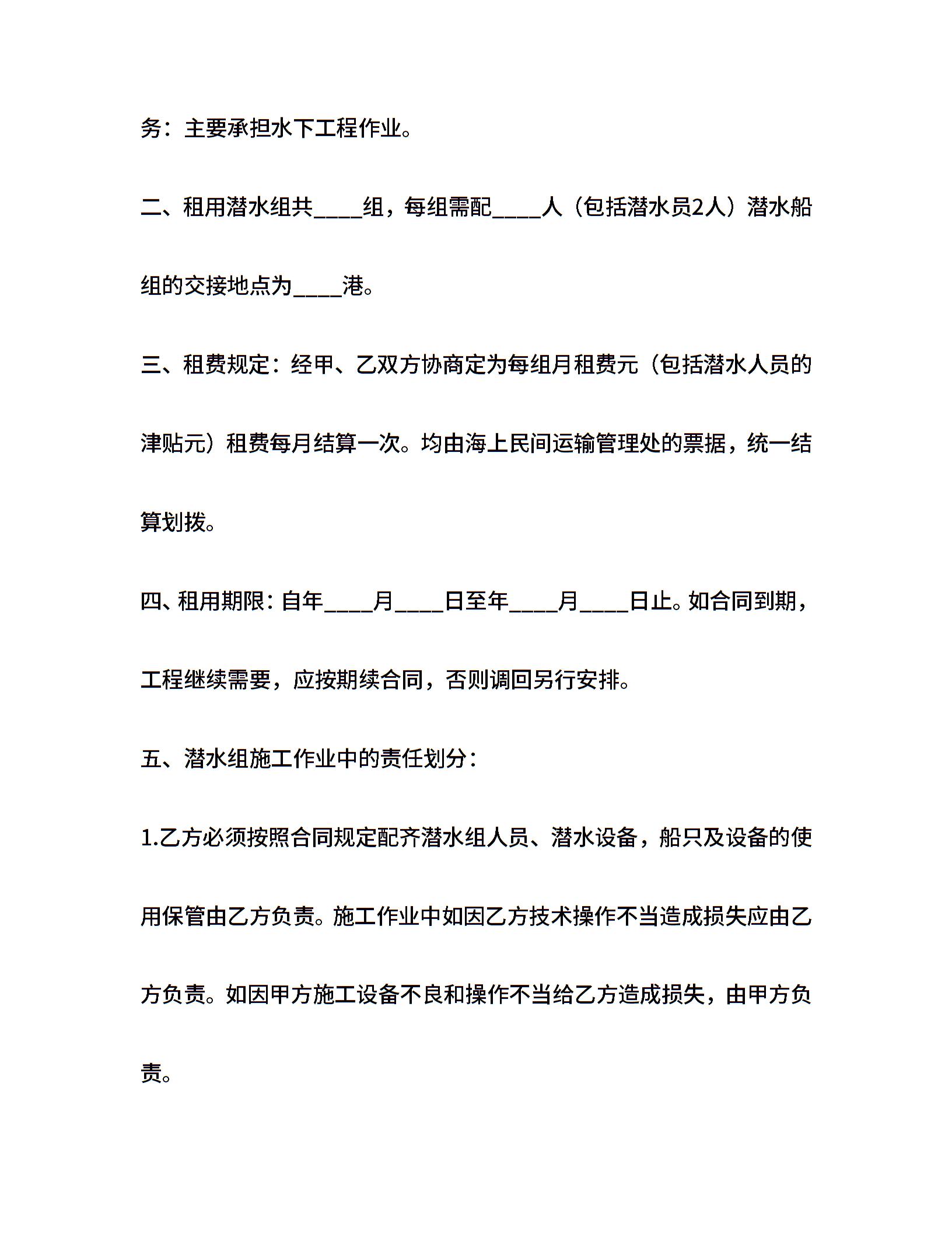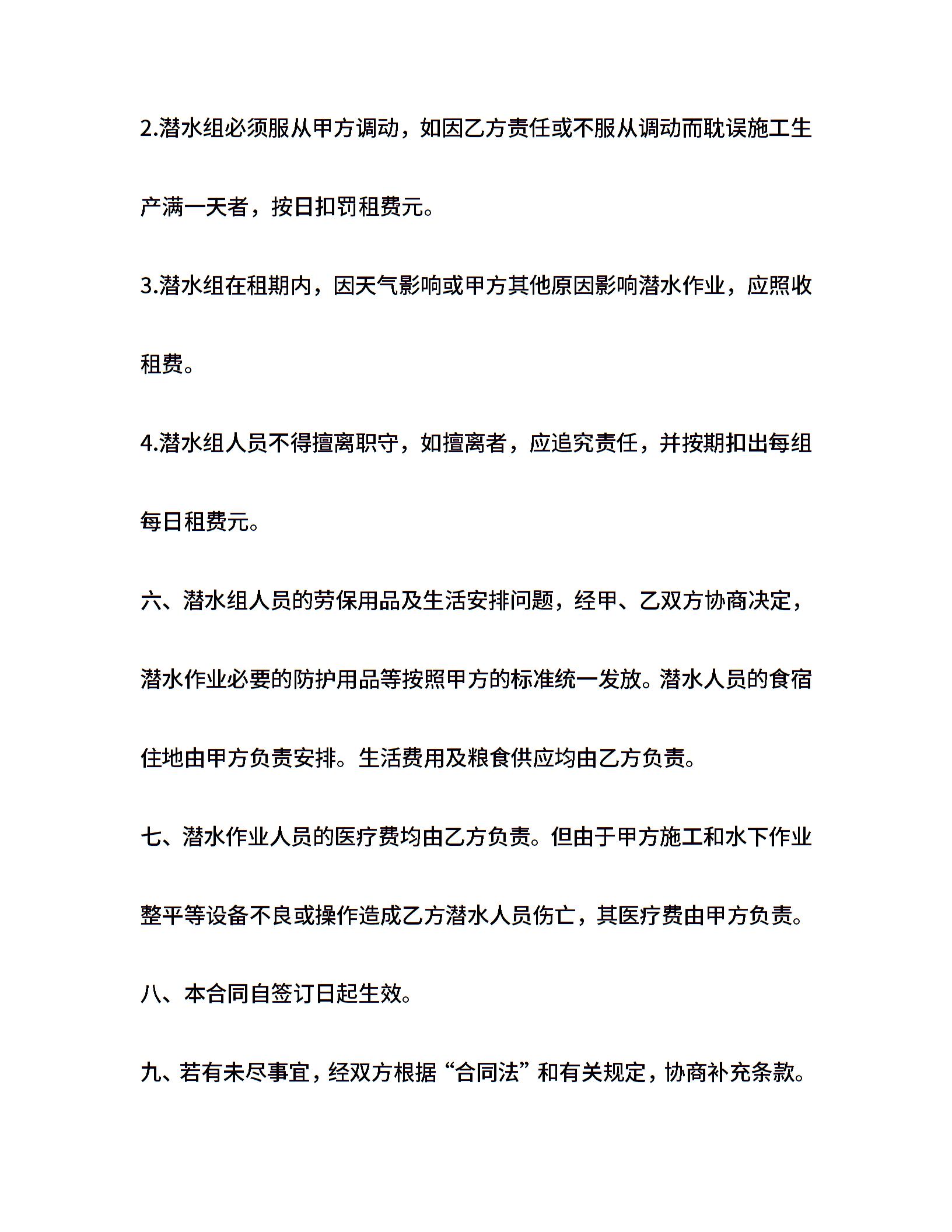租用潜水船合同