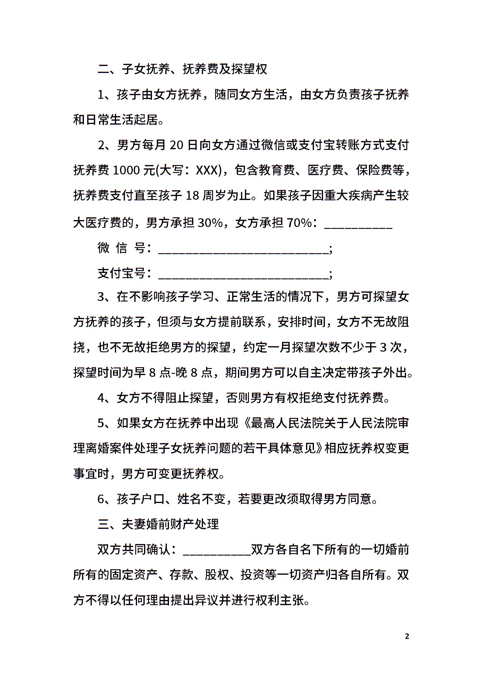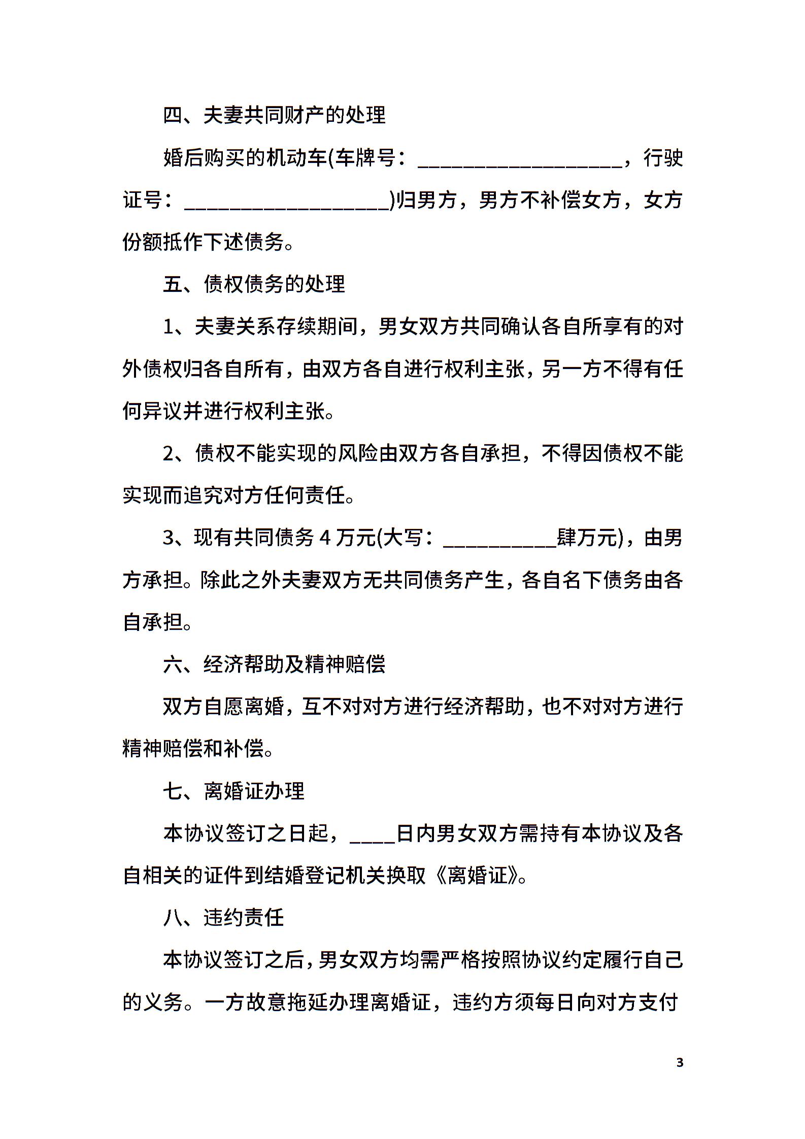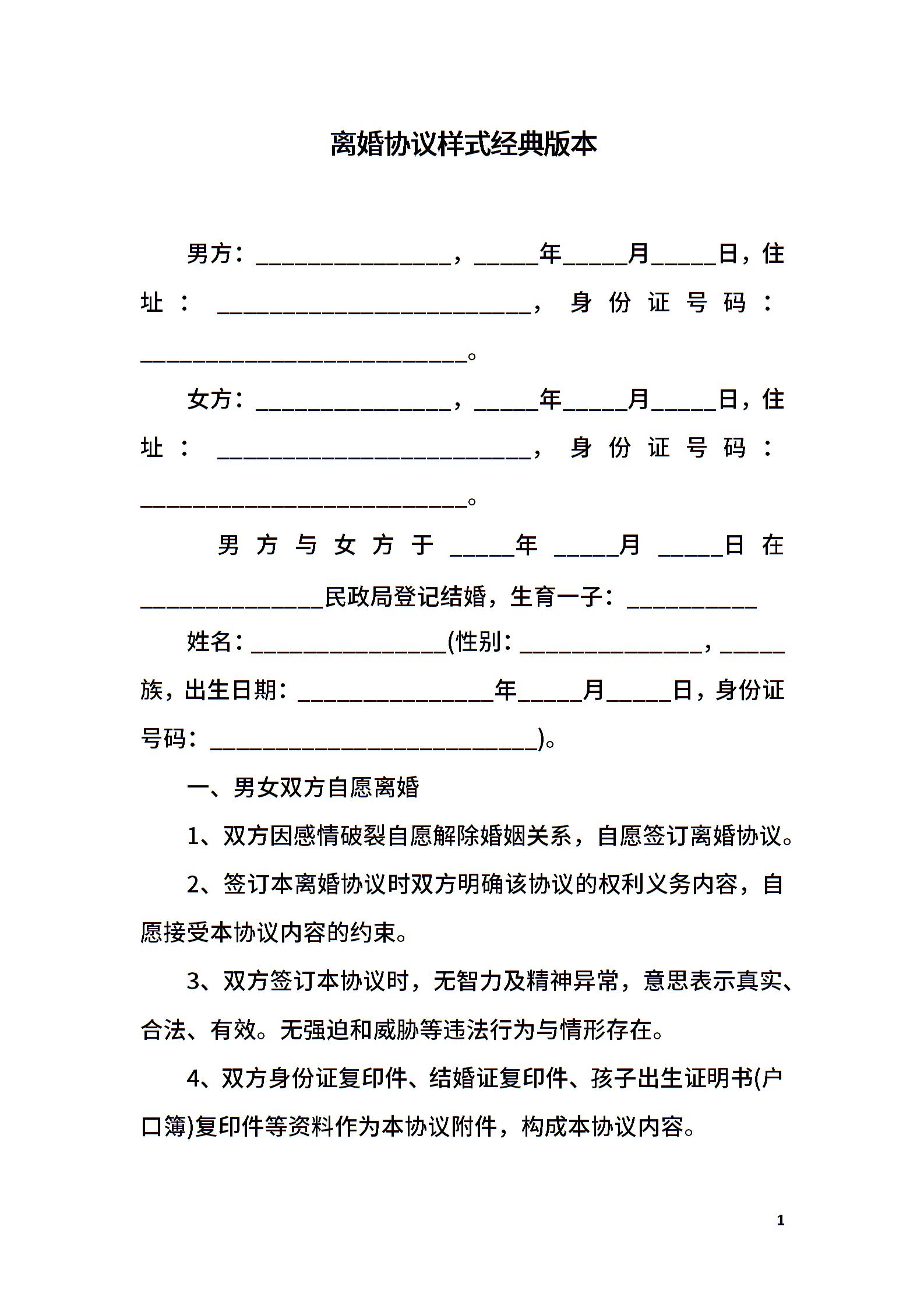 离婚协议样式经典版本