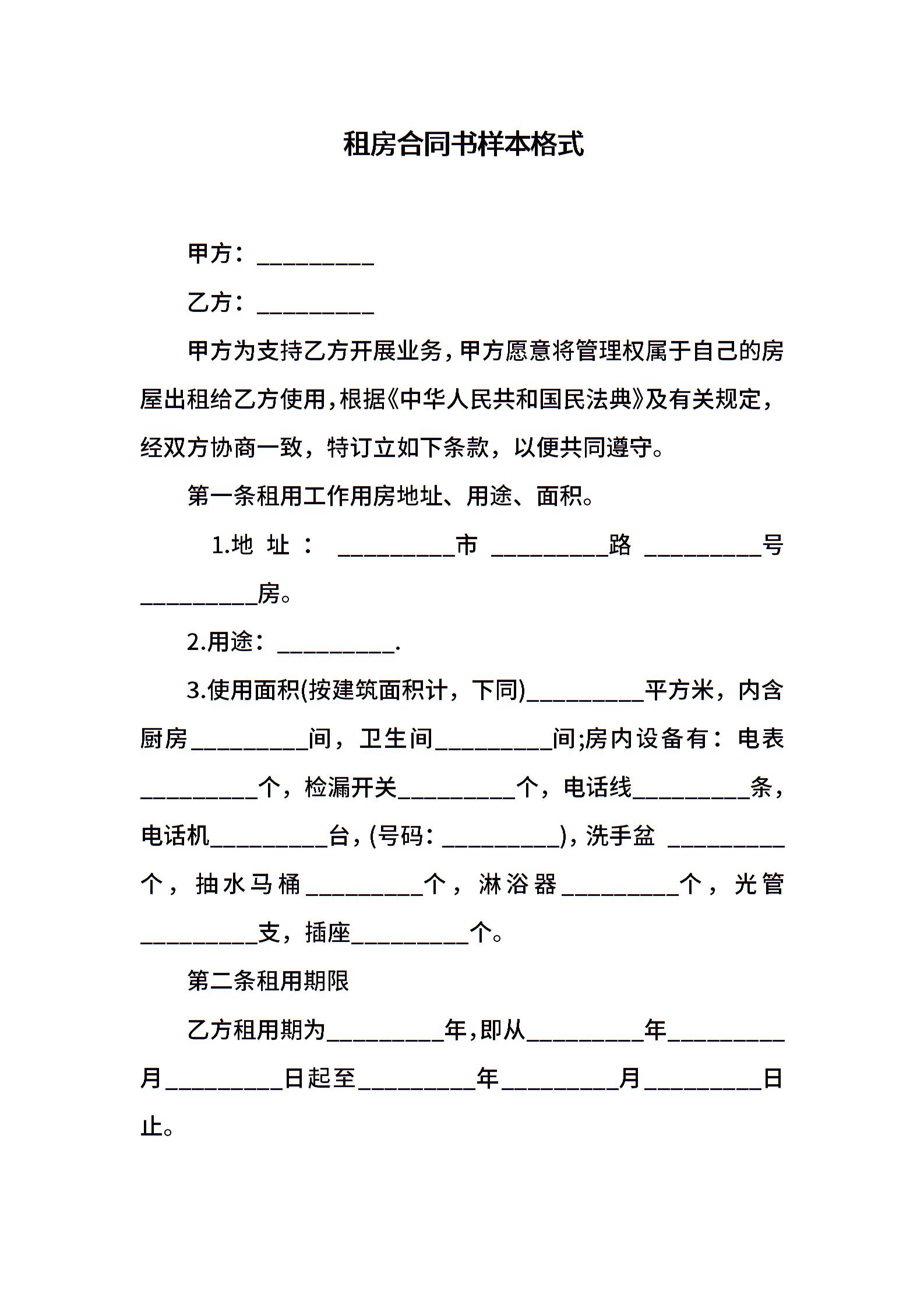 租房合同书样本格式