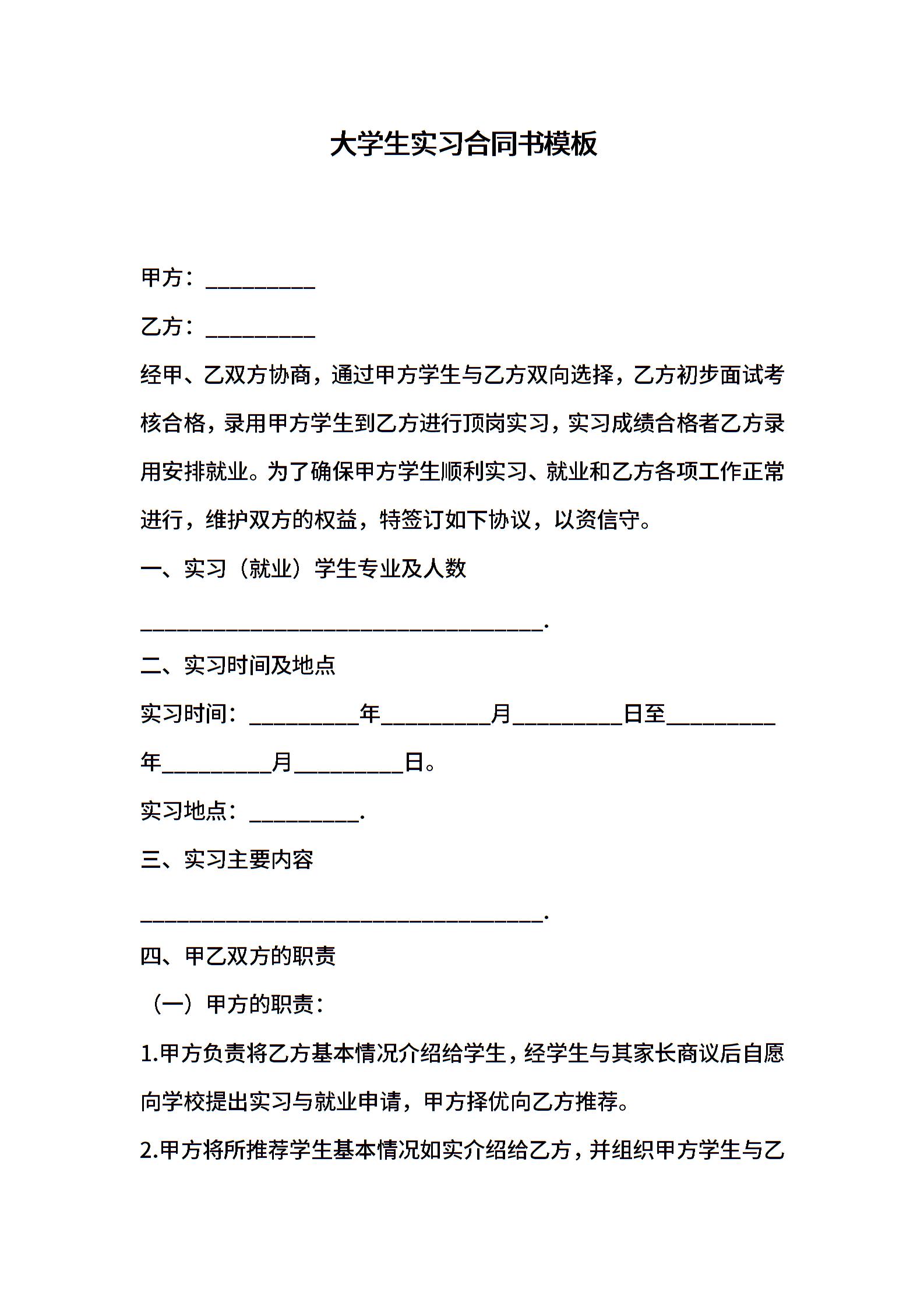 大学生实习合同书模板