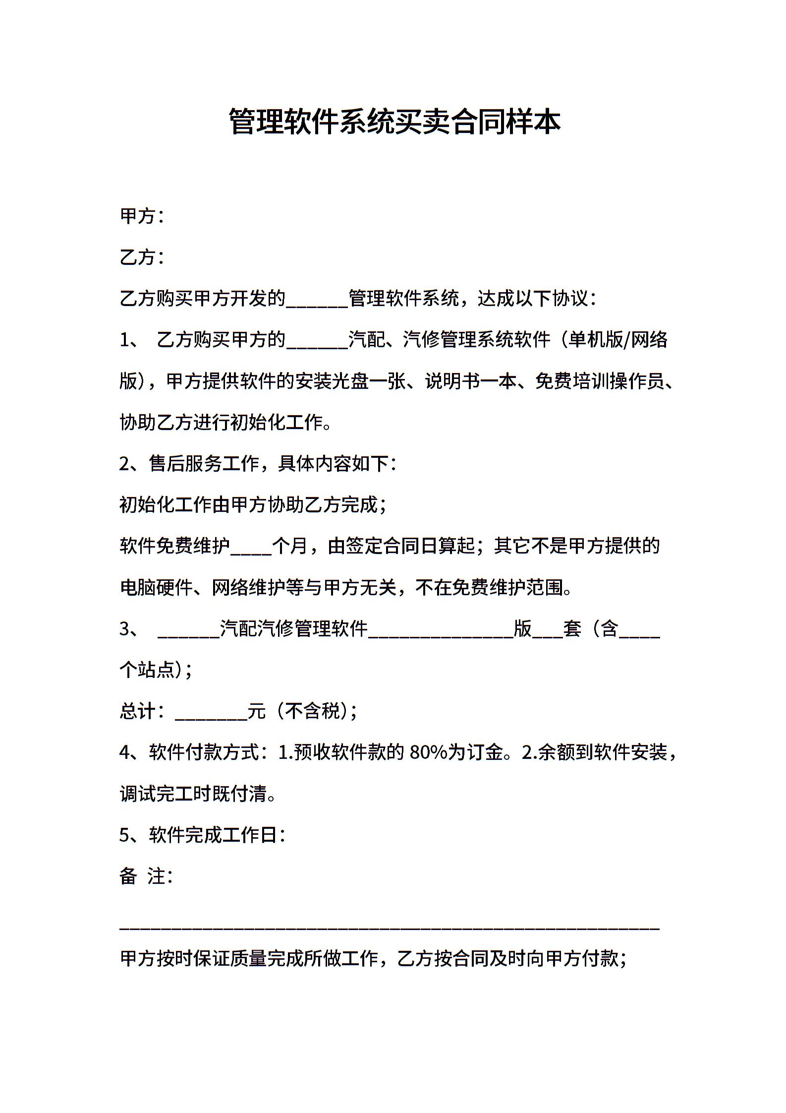 管理软件系统买卖合同样本