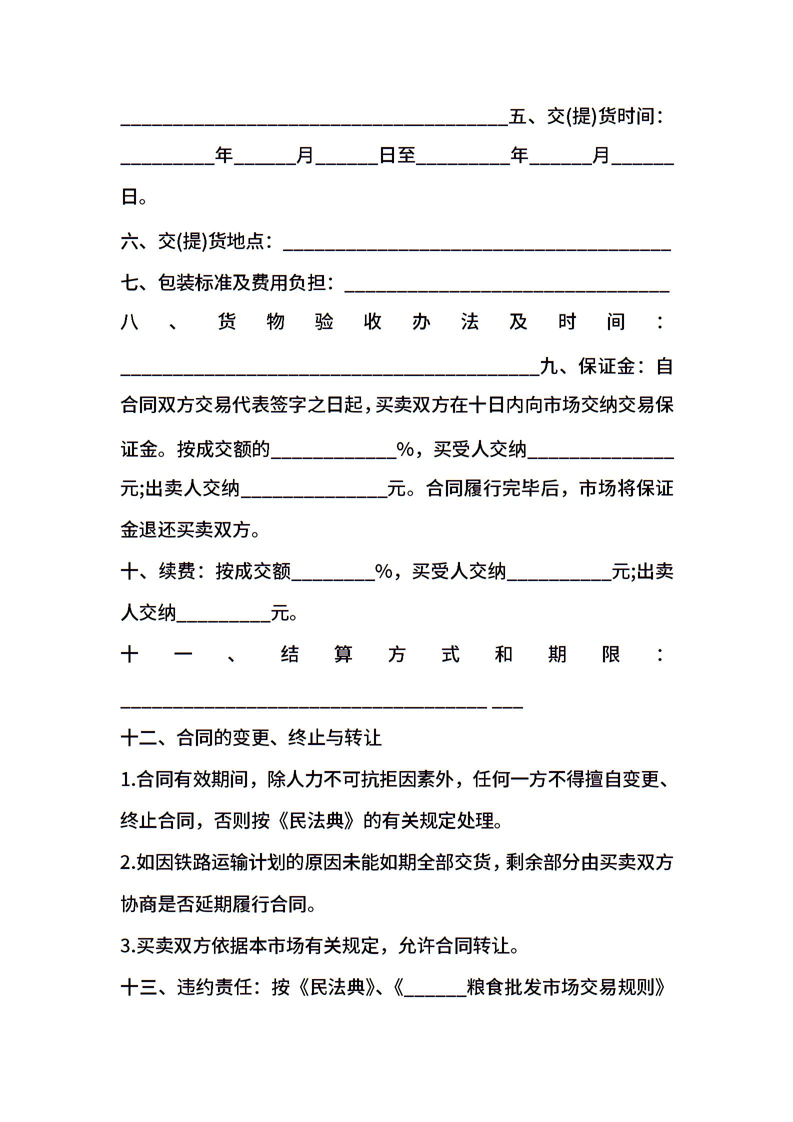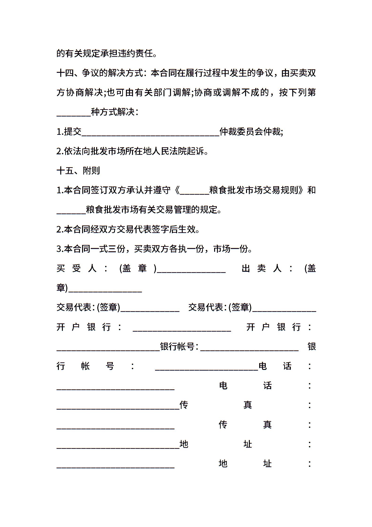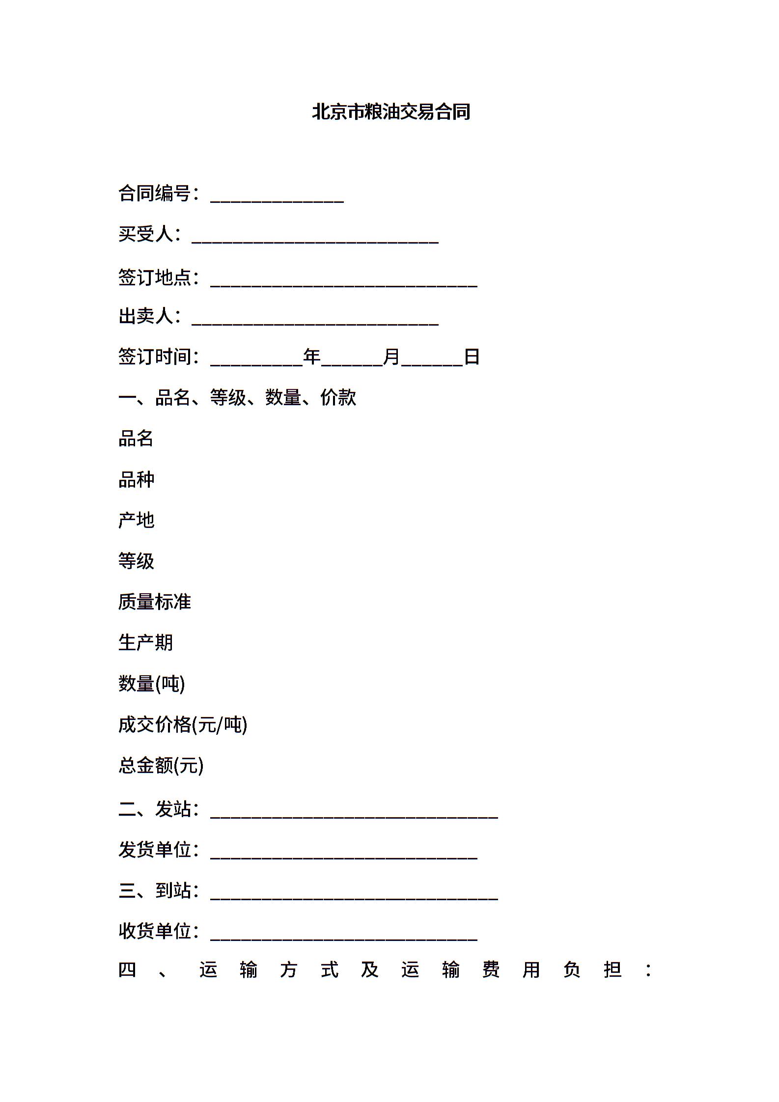 北京市粮油交易合同