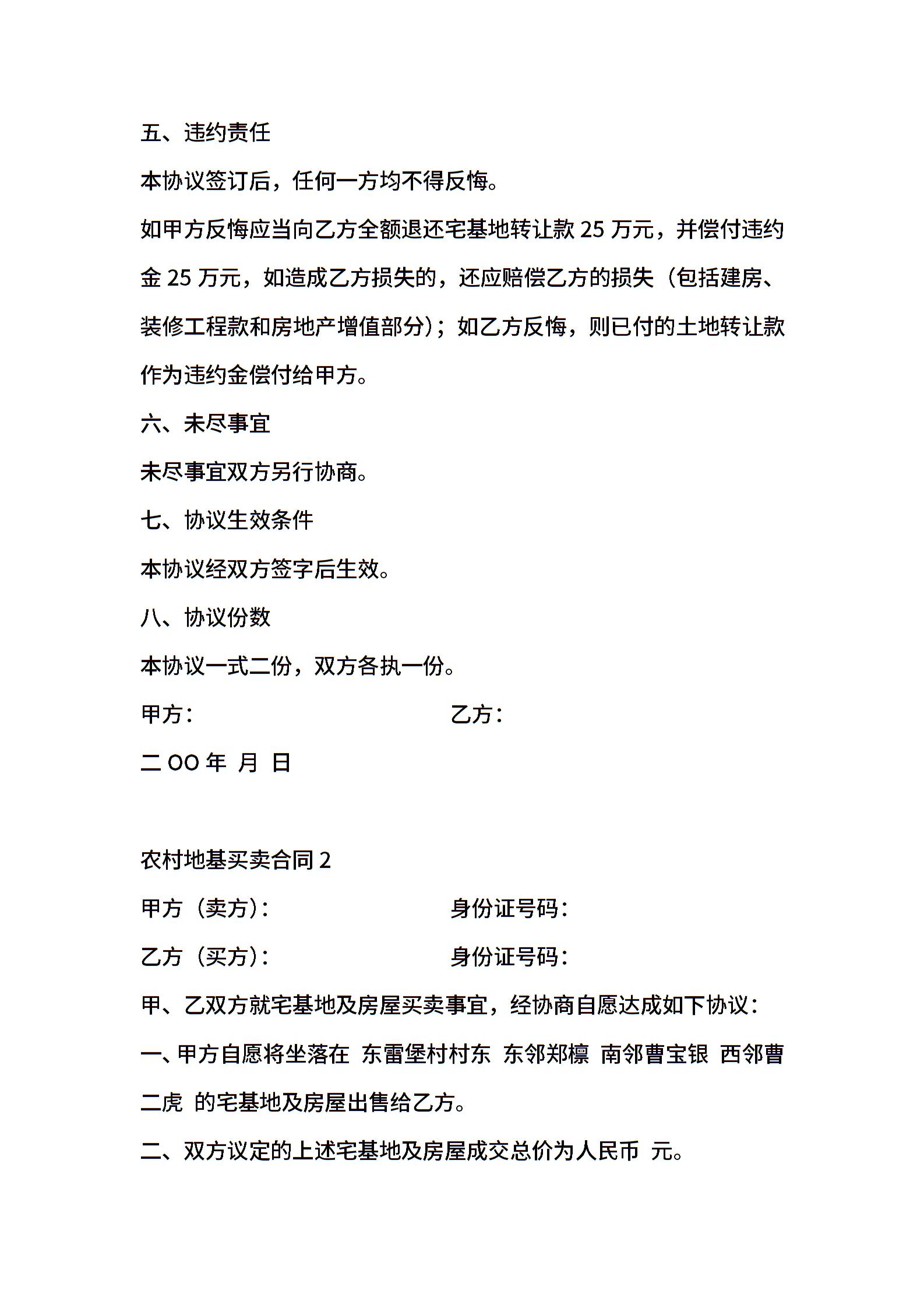 农村地基买卖合同