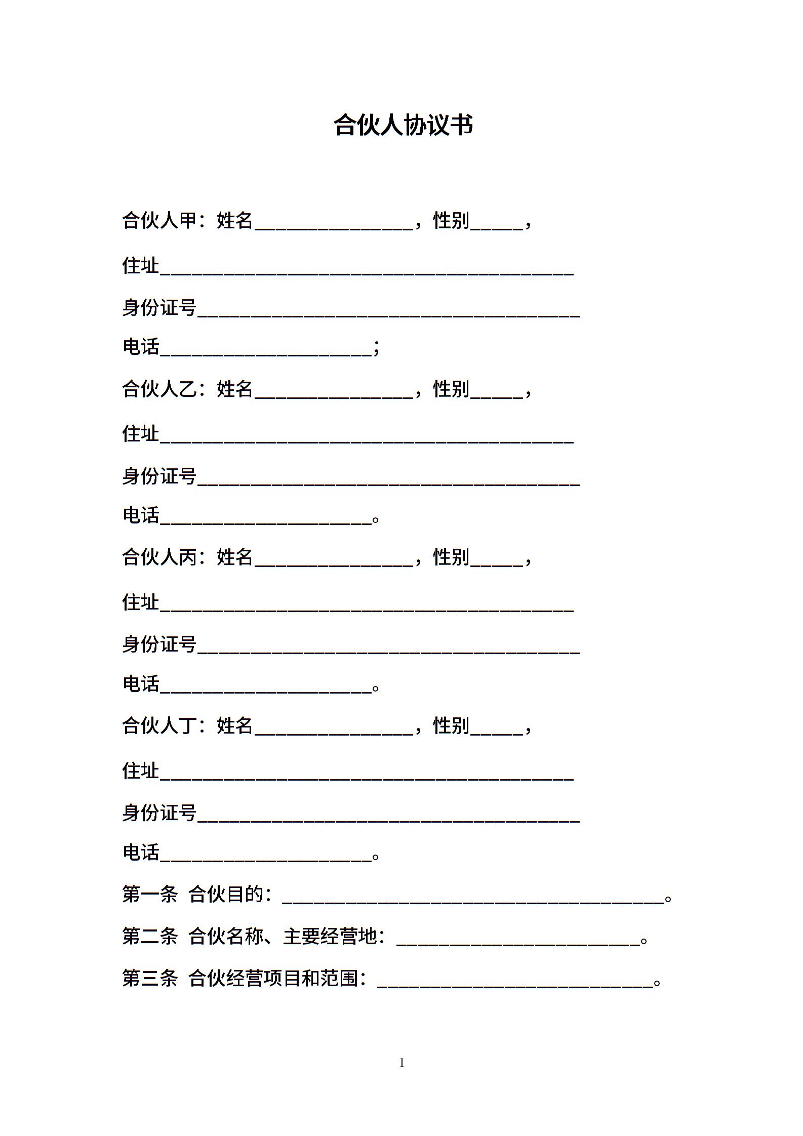 一般合伙人合作协议书