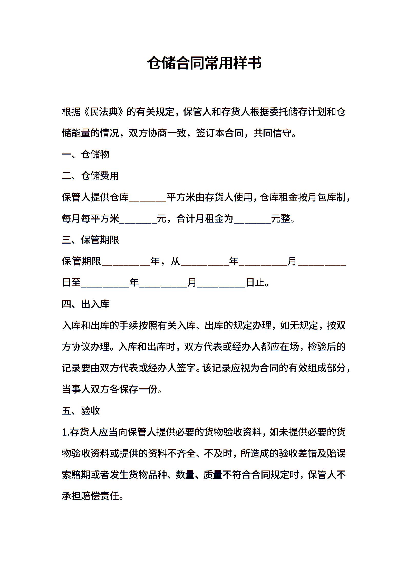 仓储合同常用样书
