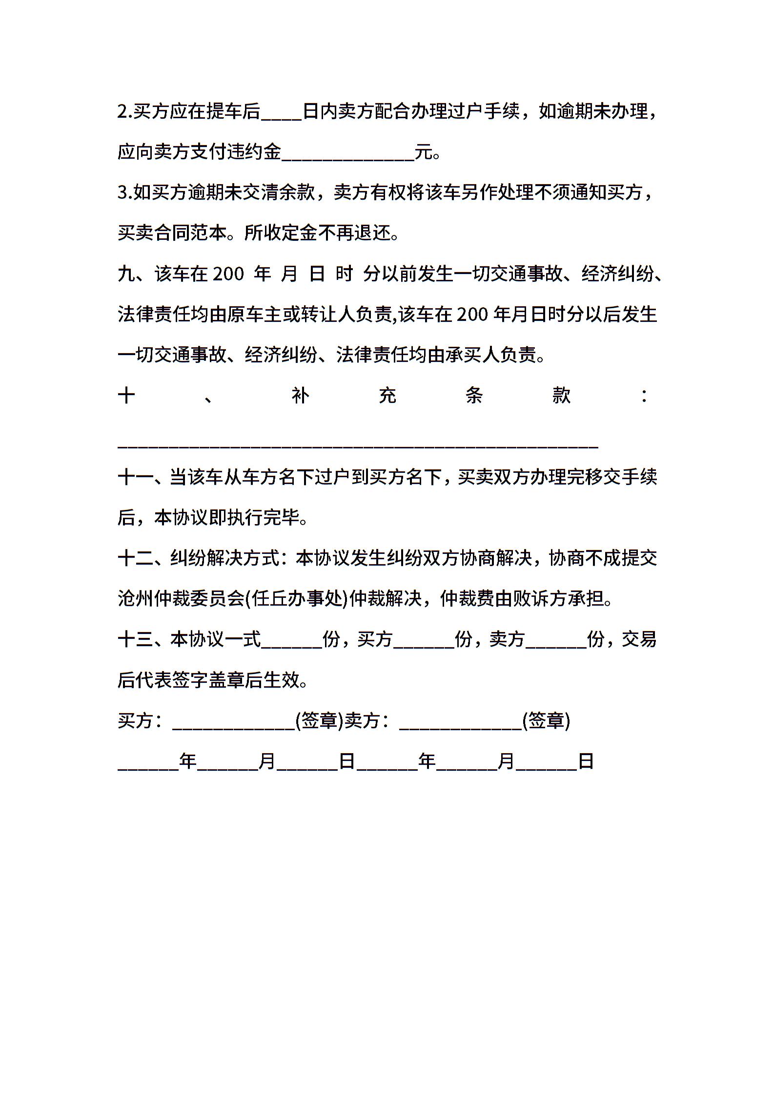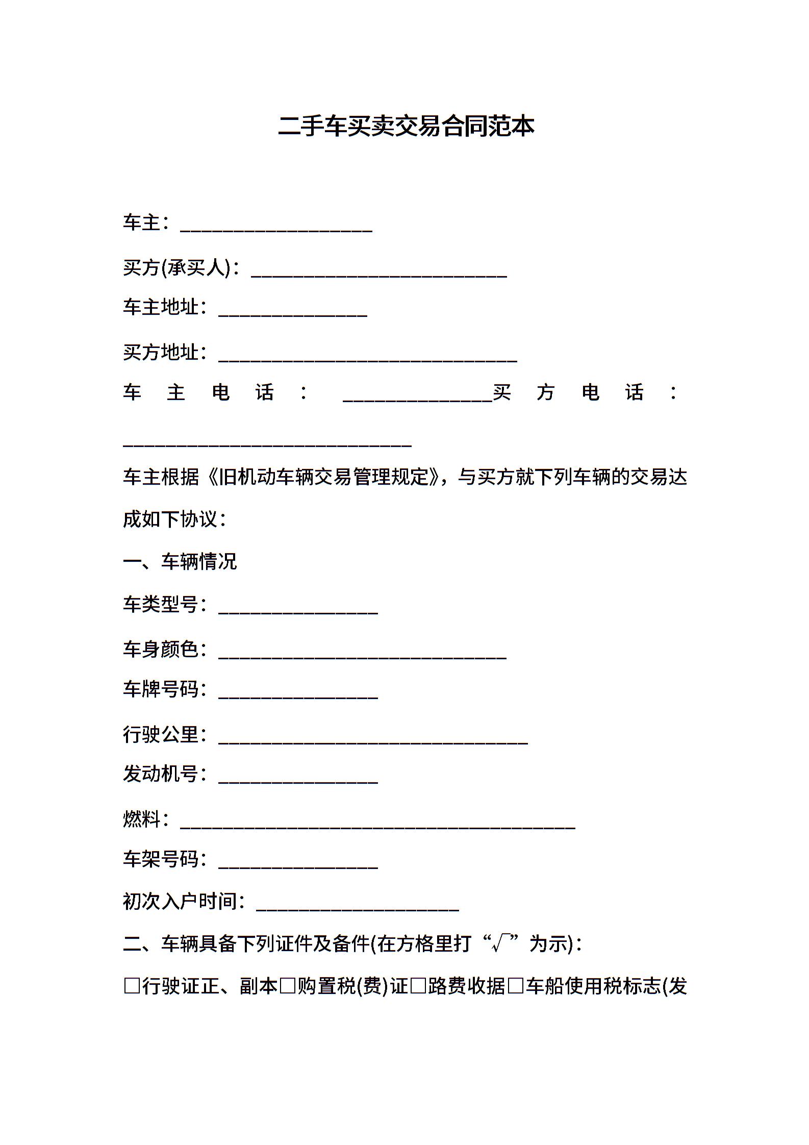 二手车买卖交易合同范本