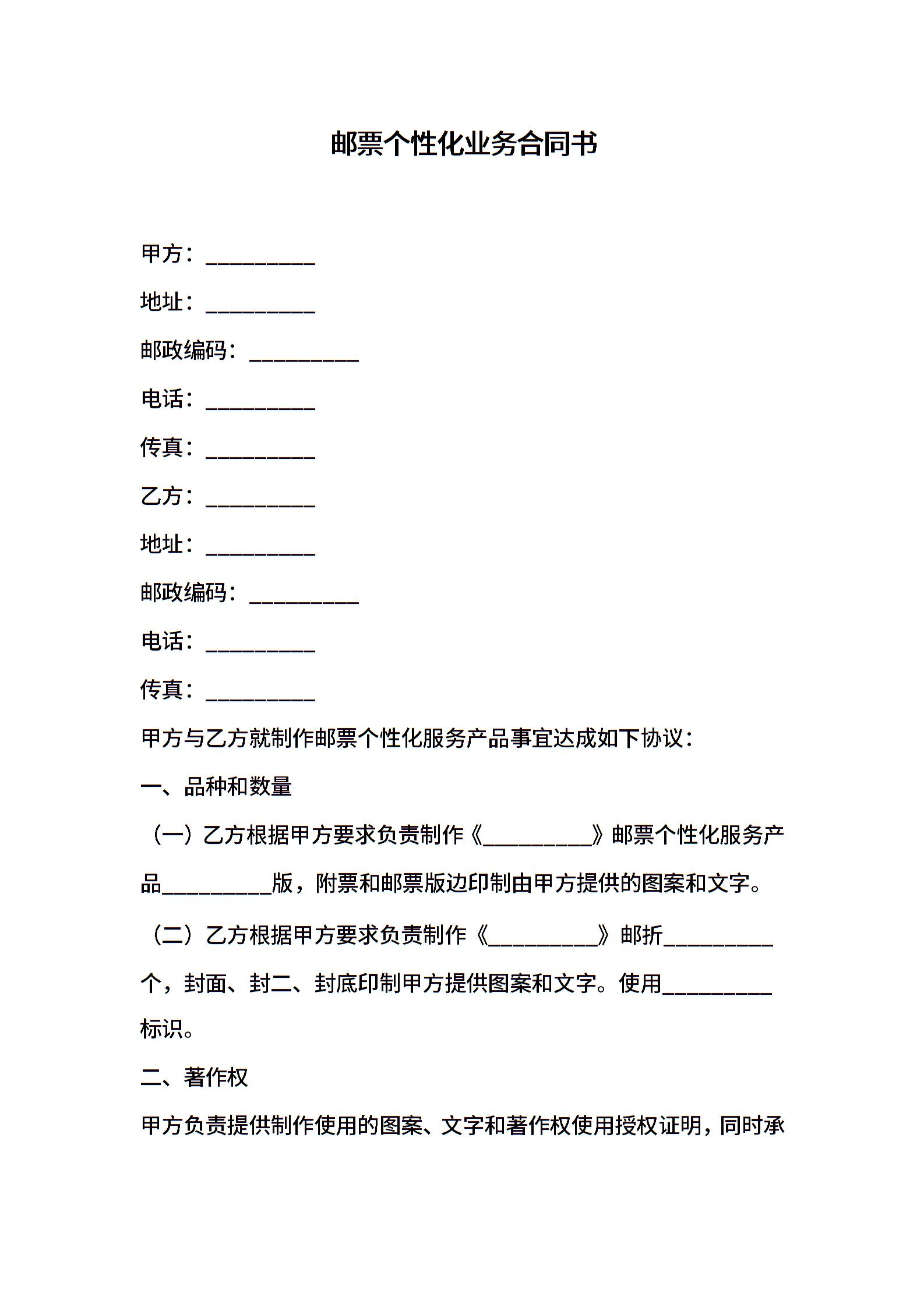 邮票个性化业务合同书