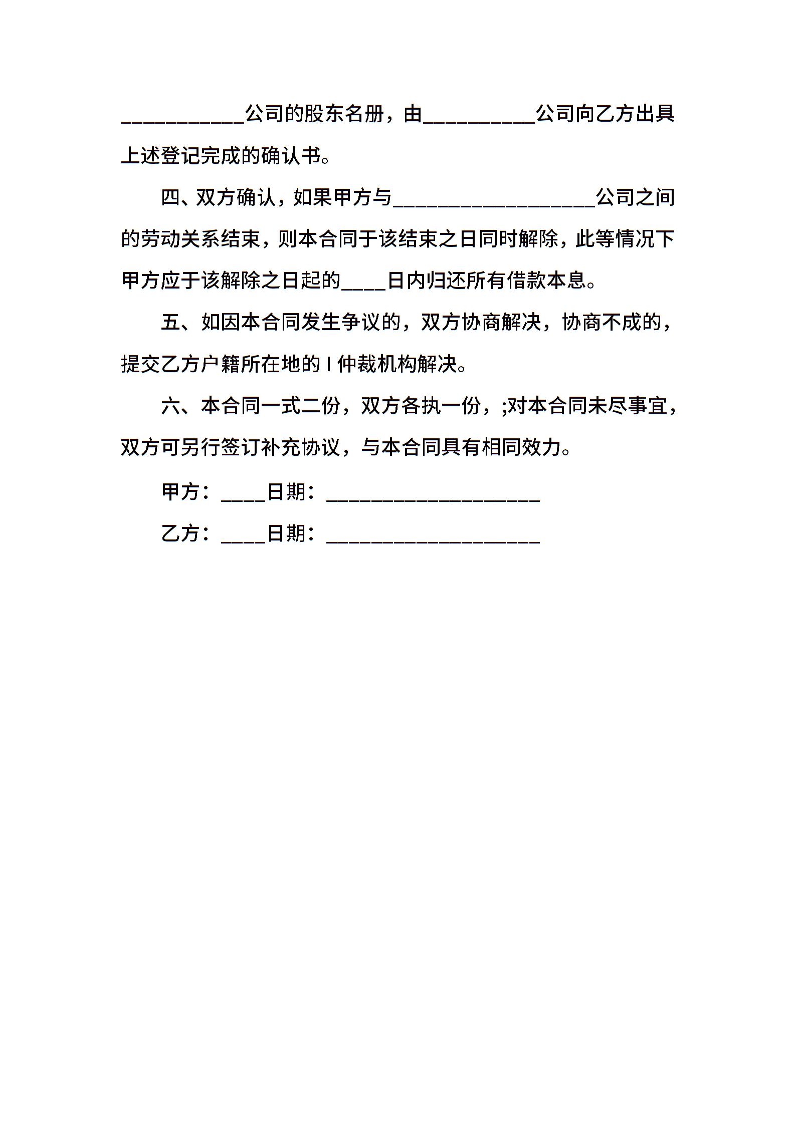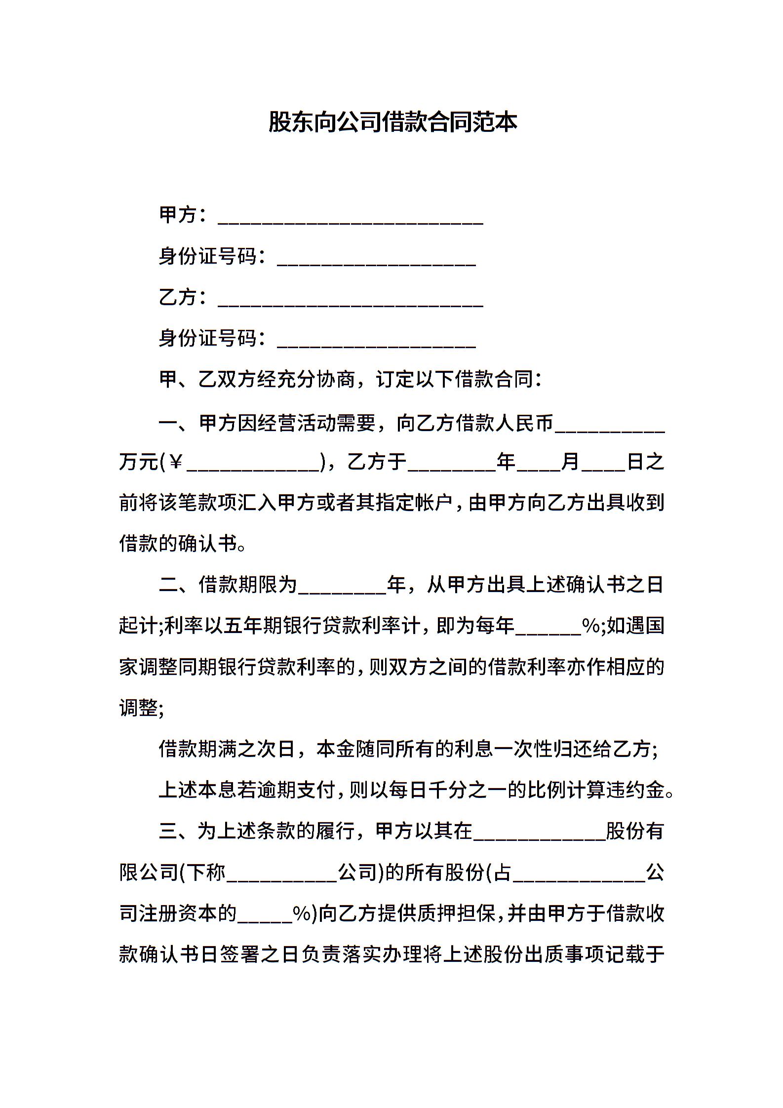 股东向公司借款合同范本