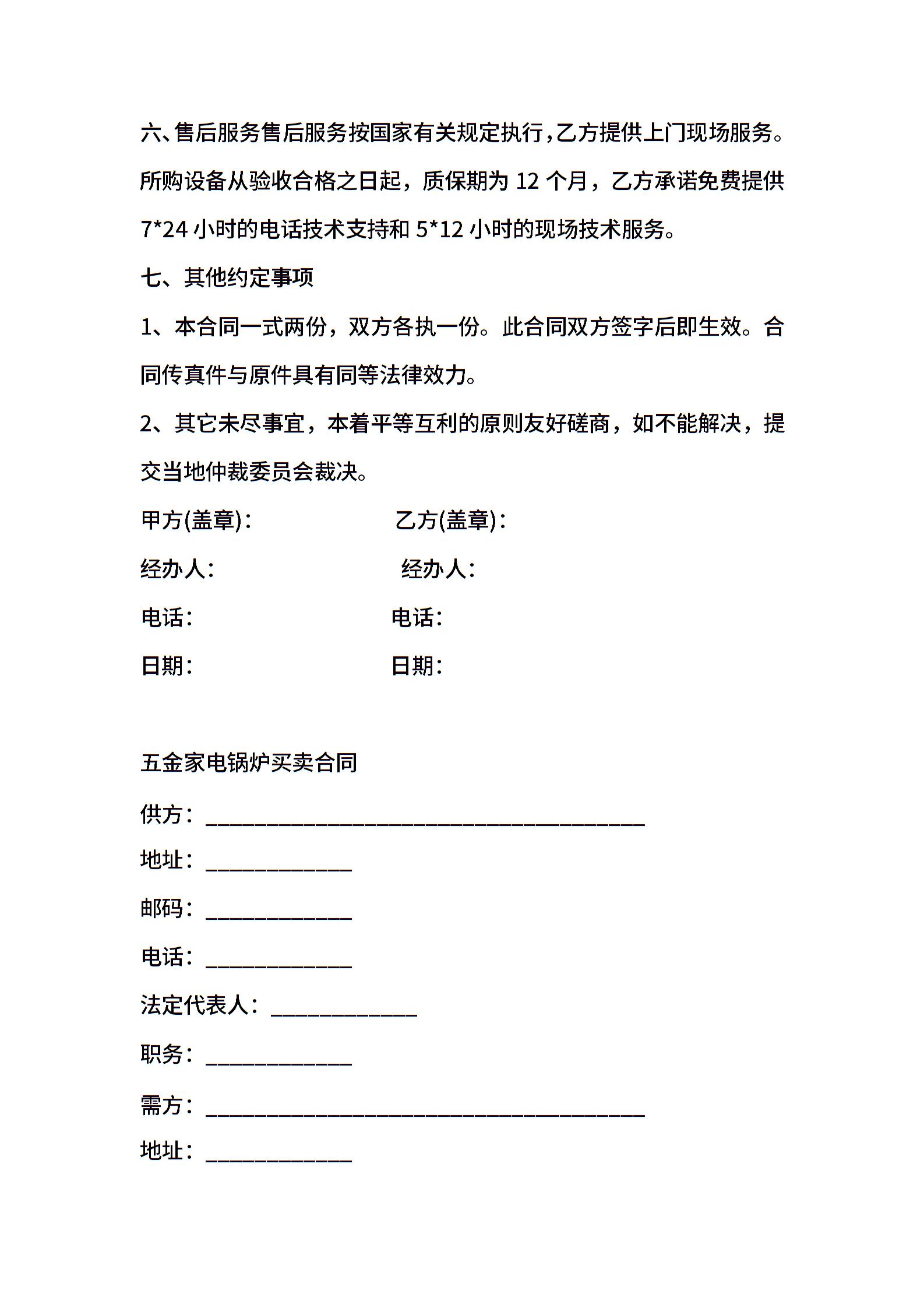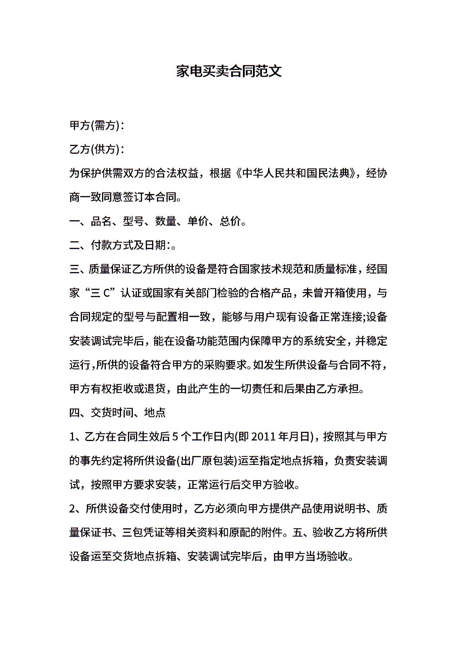 家电买卖合同范文