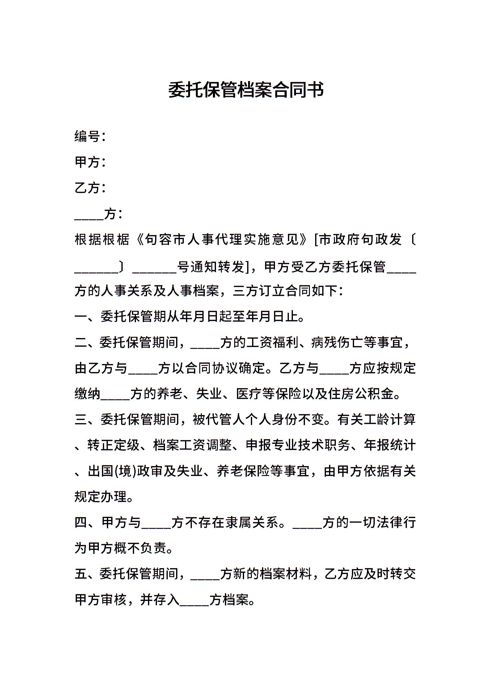 委托保管档案合同书