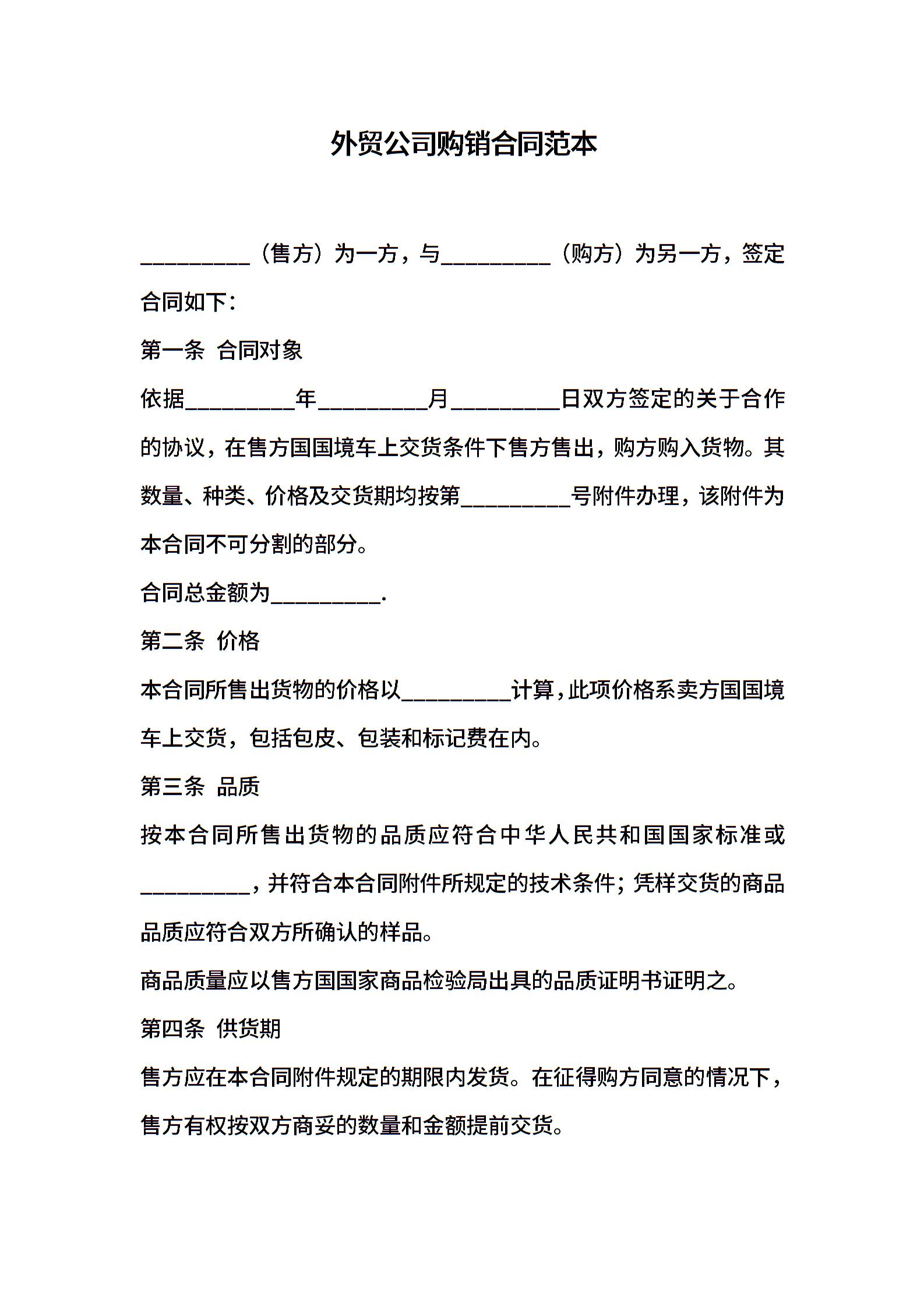 当前位置:量子办公 > 合同模板 > 购销合同 >