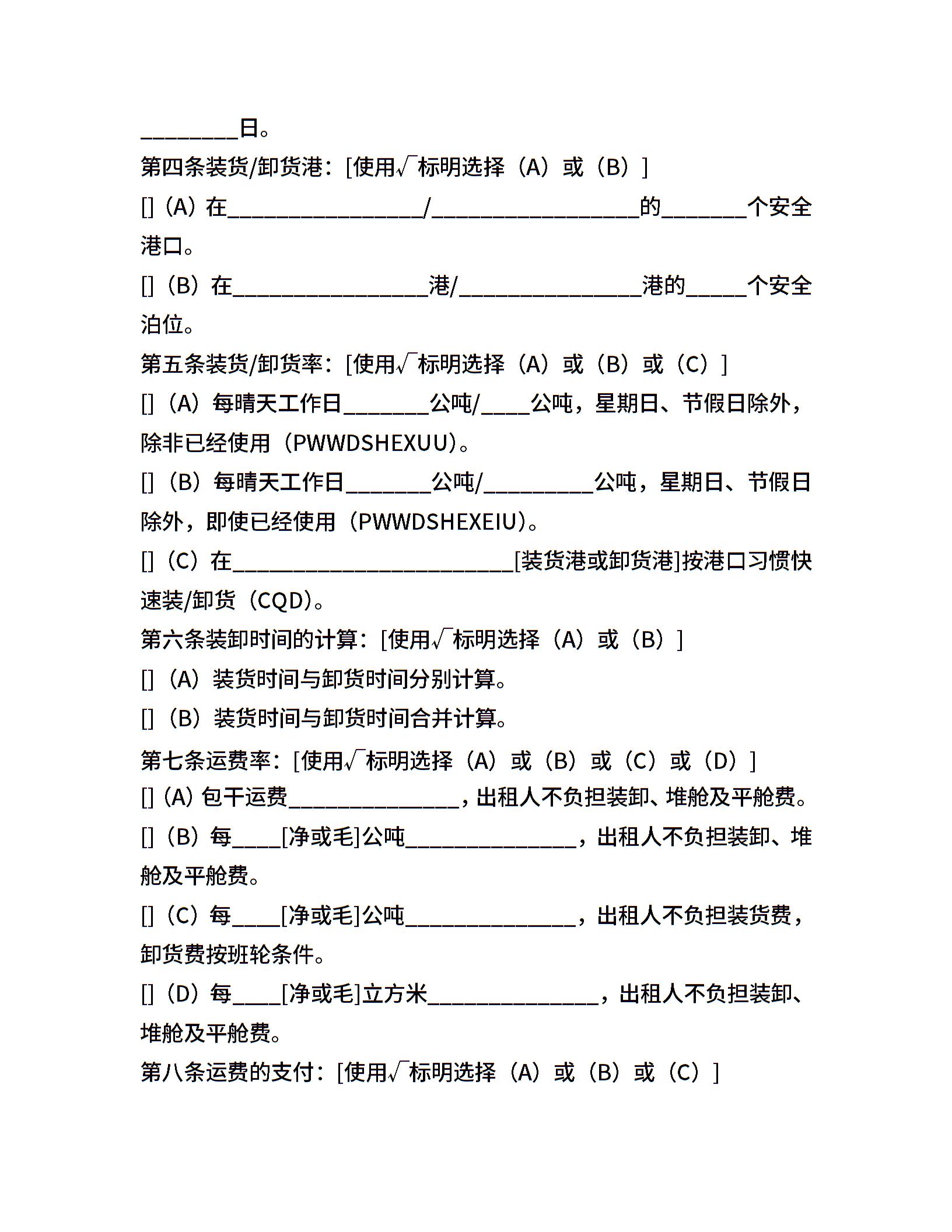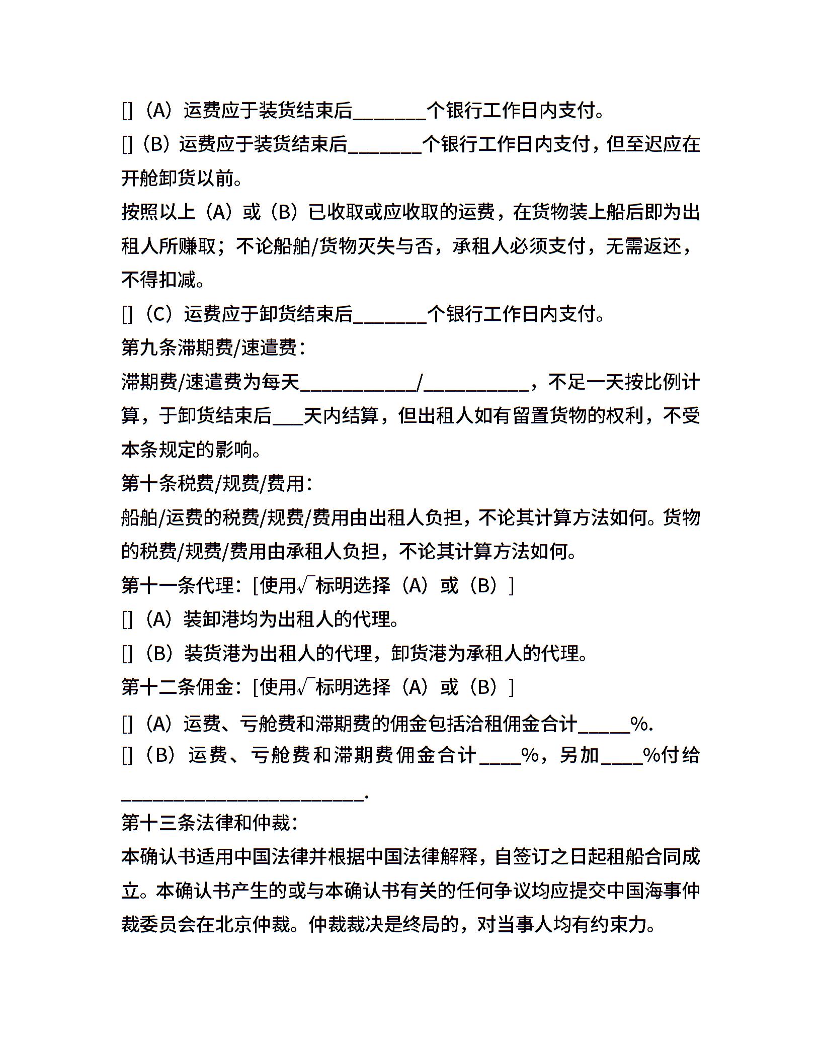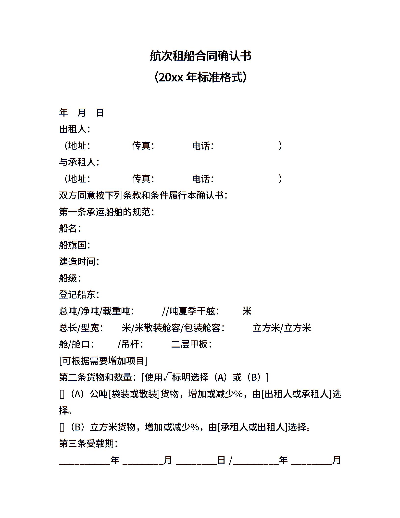 航次租船合同确认书(2022年标准格式)