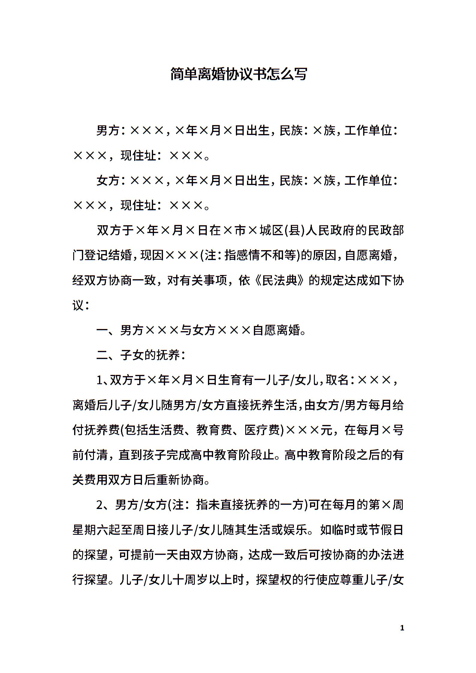简单离婚协议书怎么写