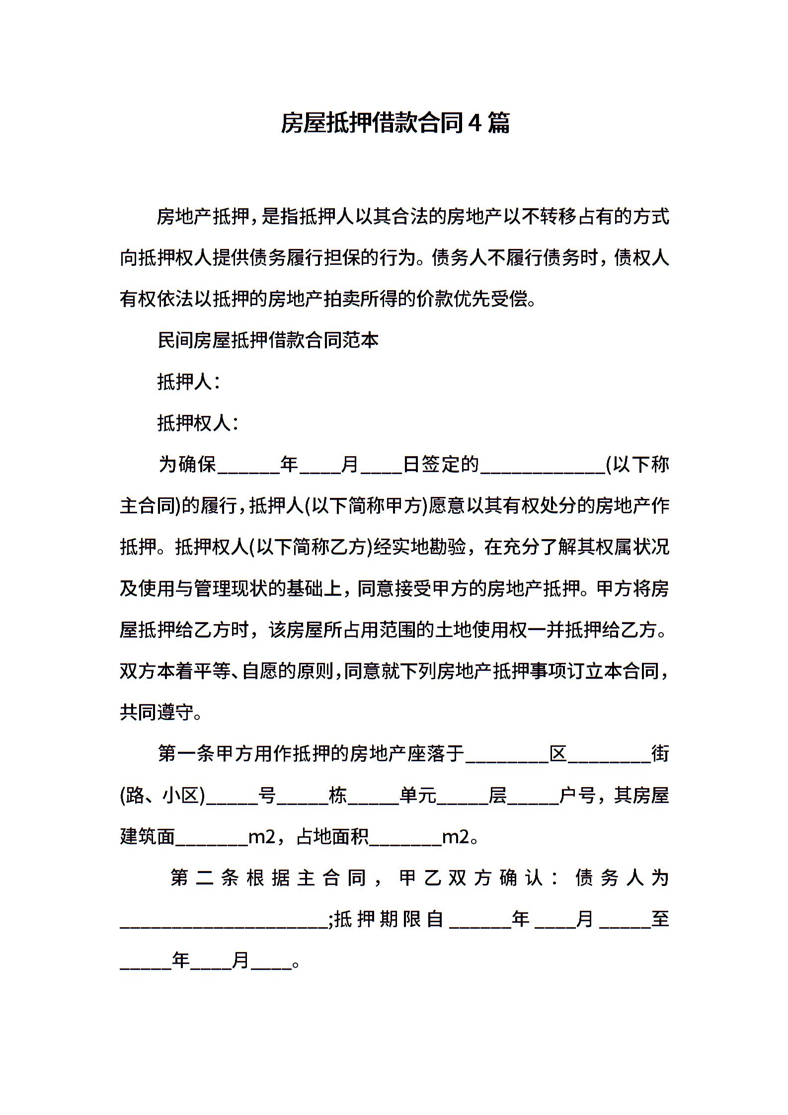 房屋抵押借款合同4篇