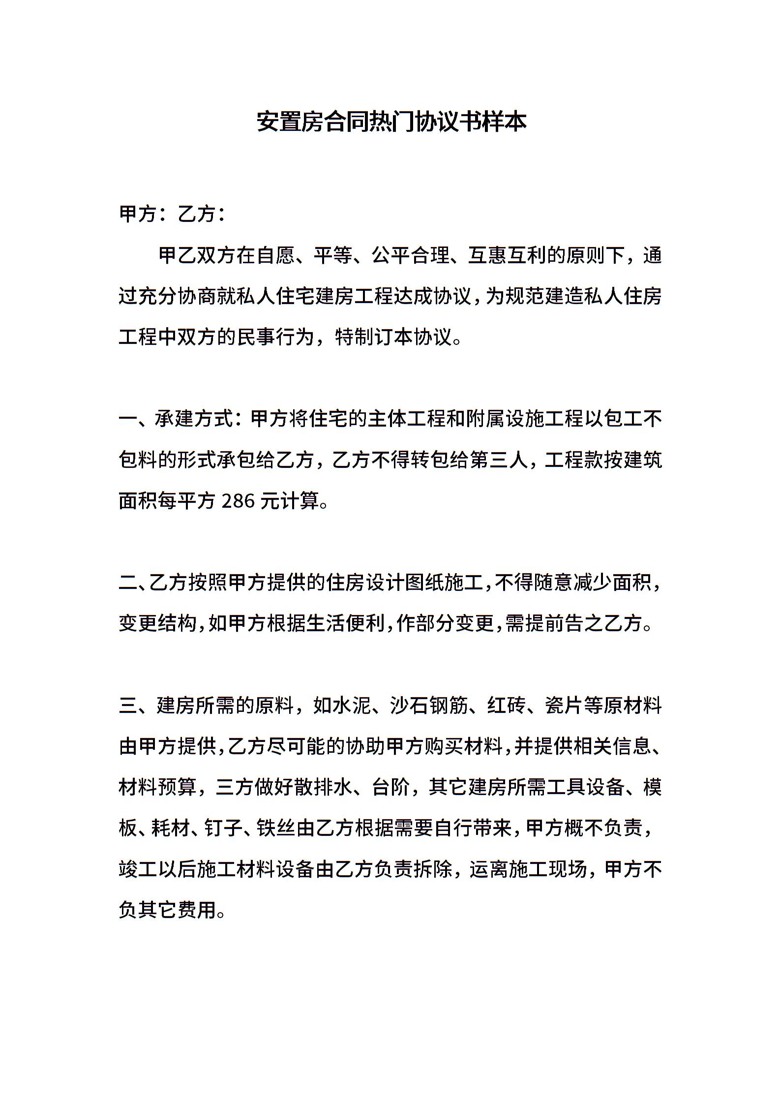 安置房合同热门协议书样本