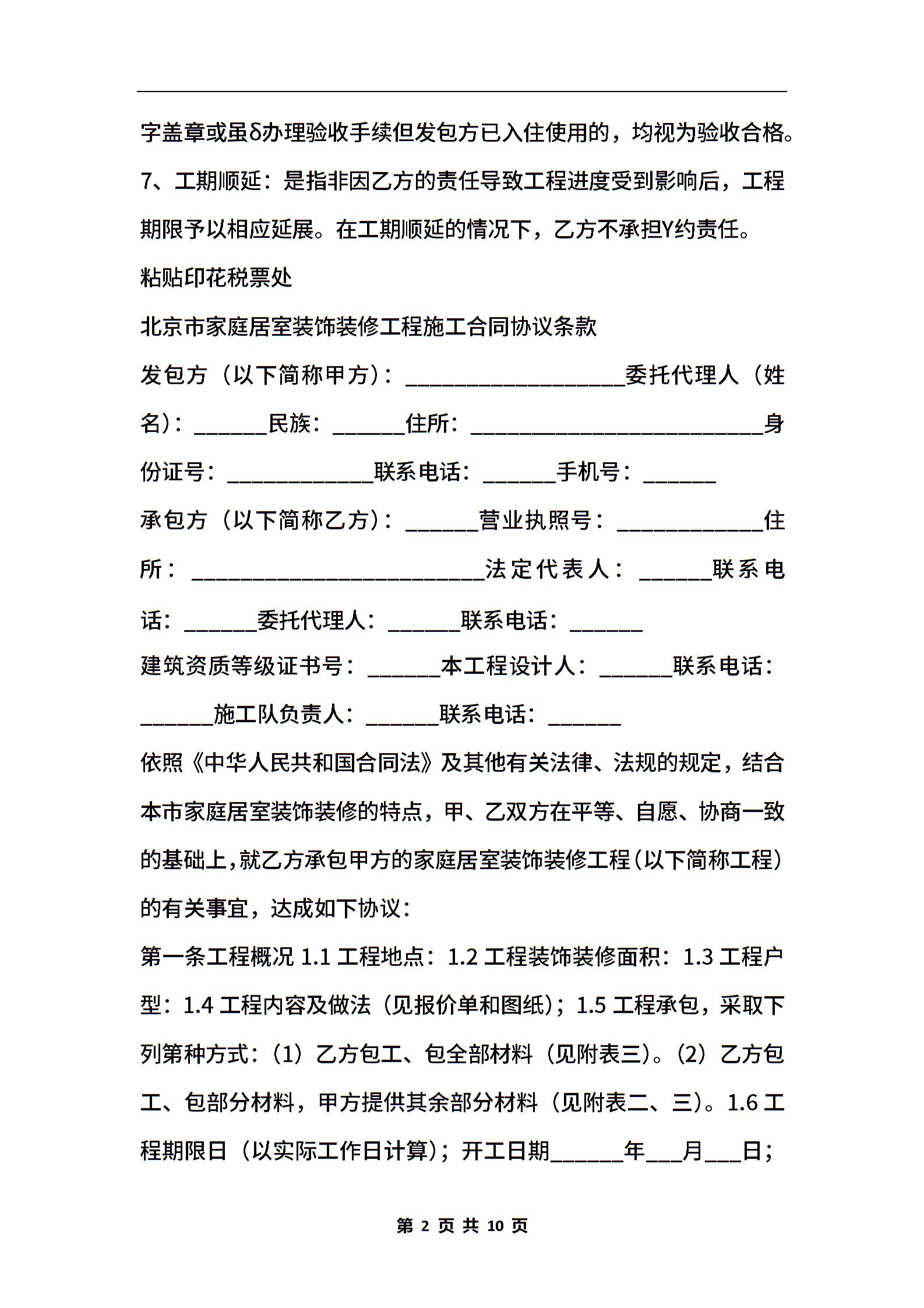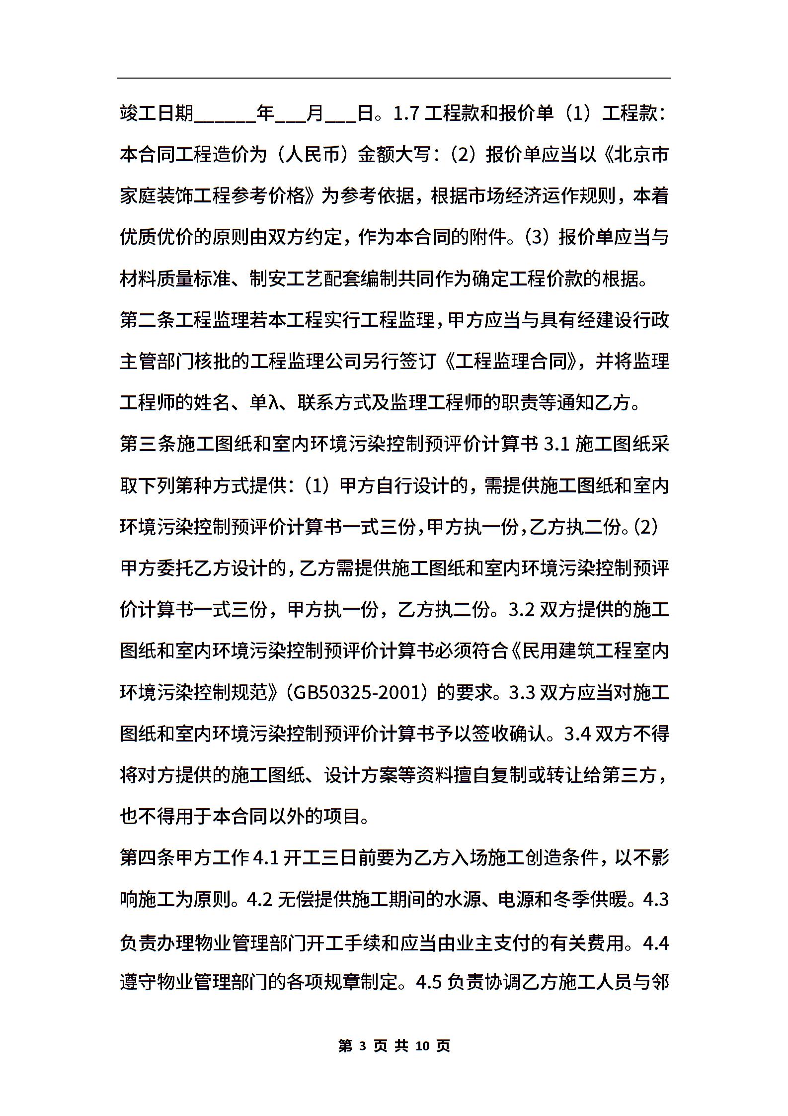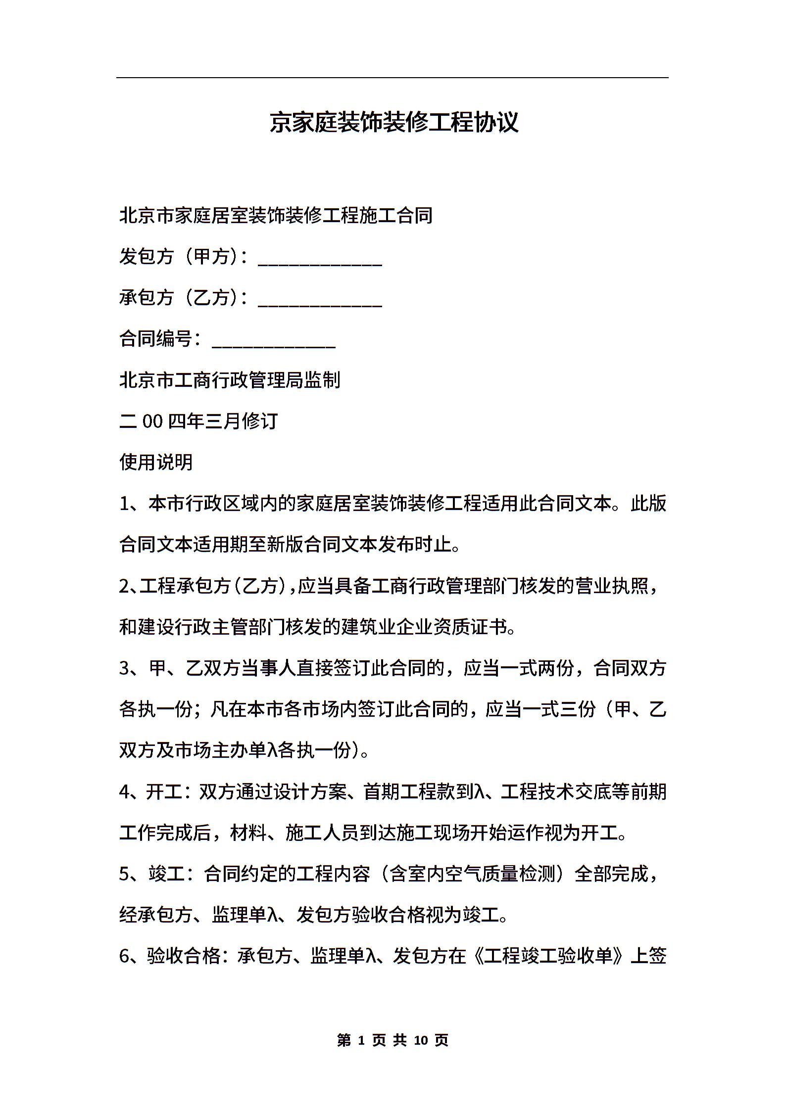 京家庭装饰装修工程协议