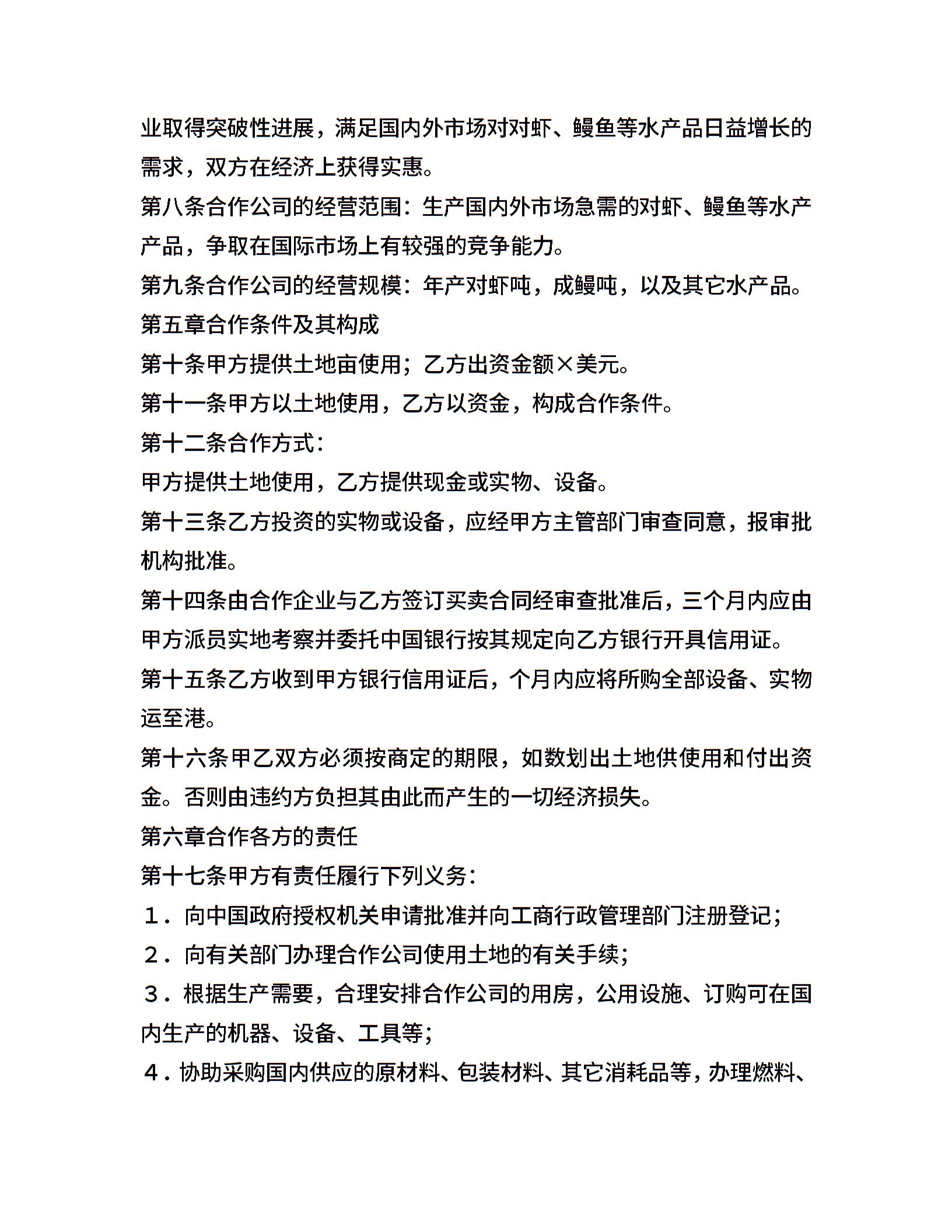 农牧渔业类合同参考格式