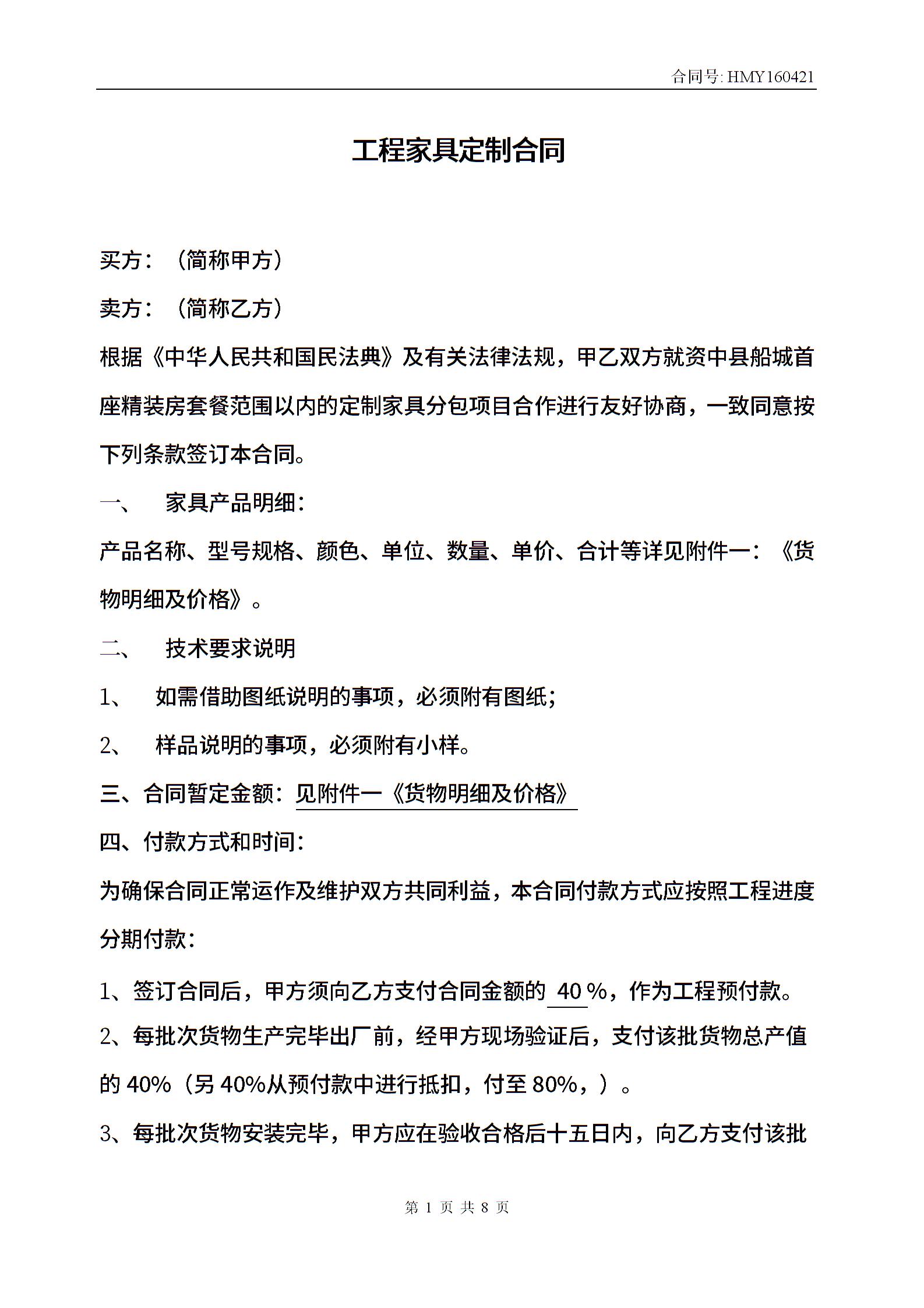 工程定制家具采购合同