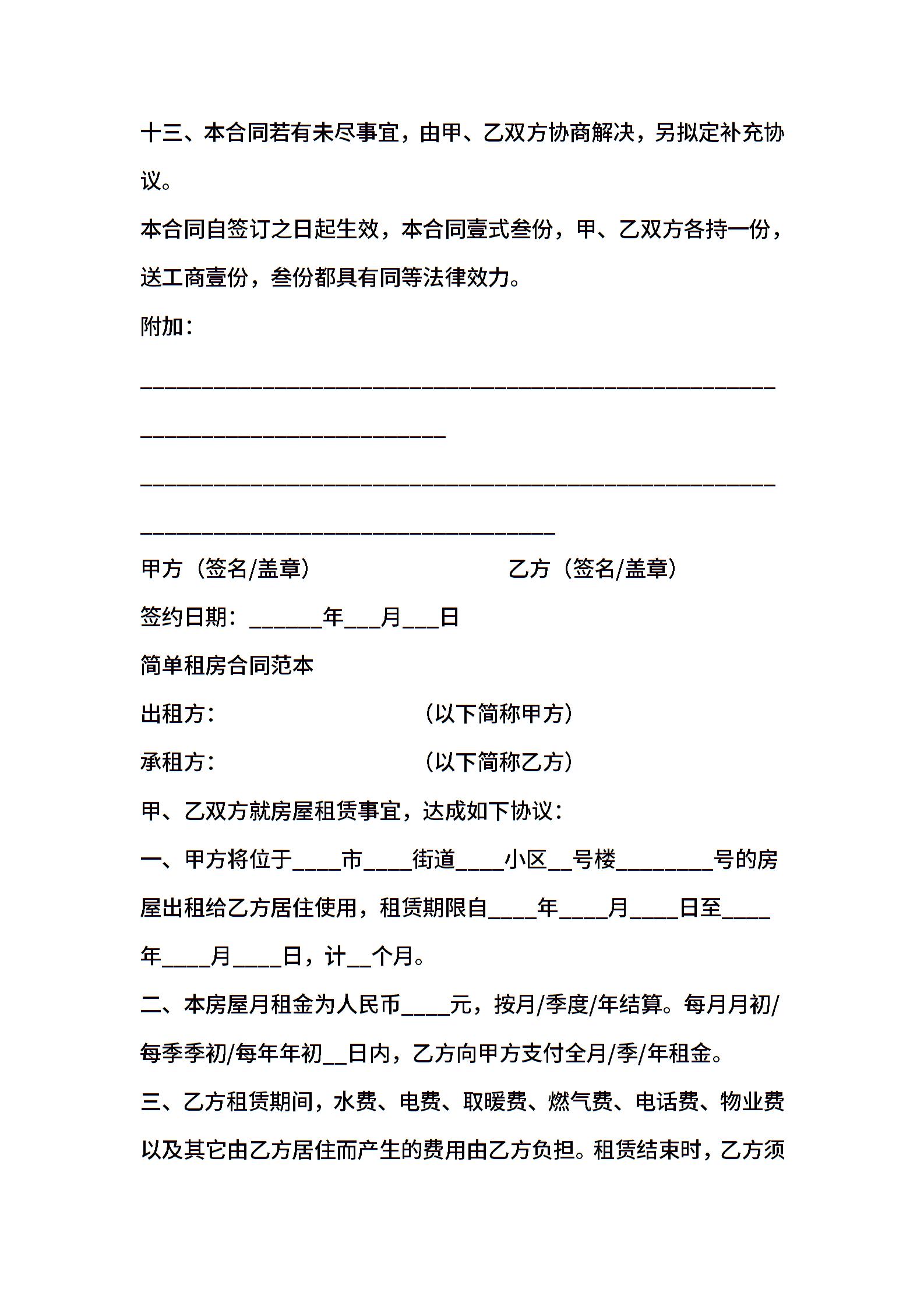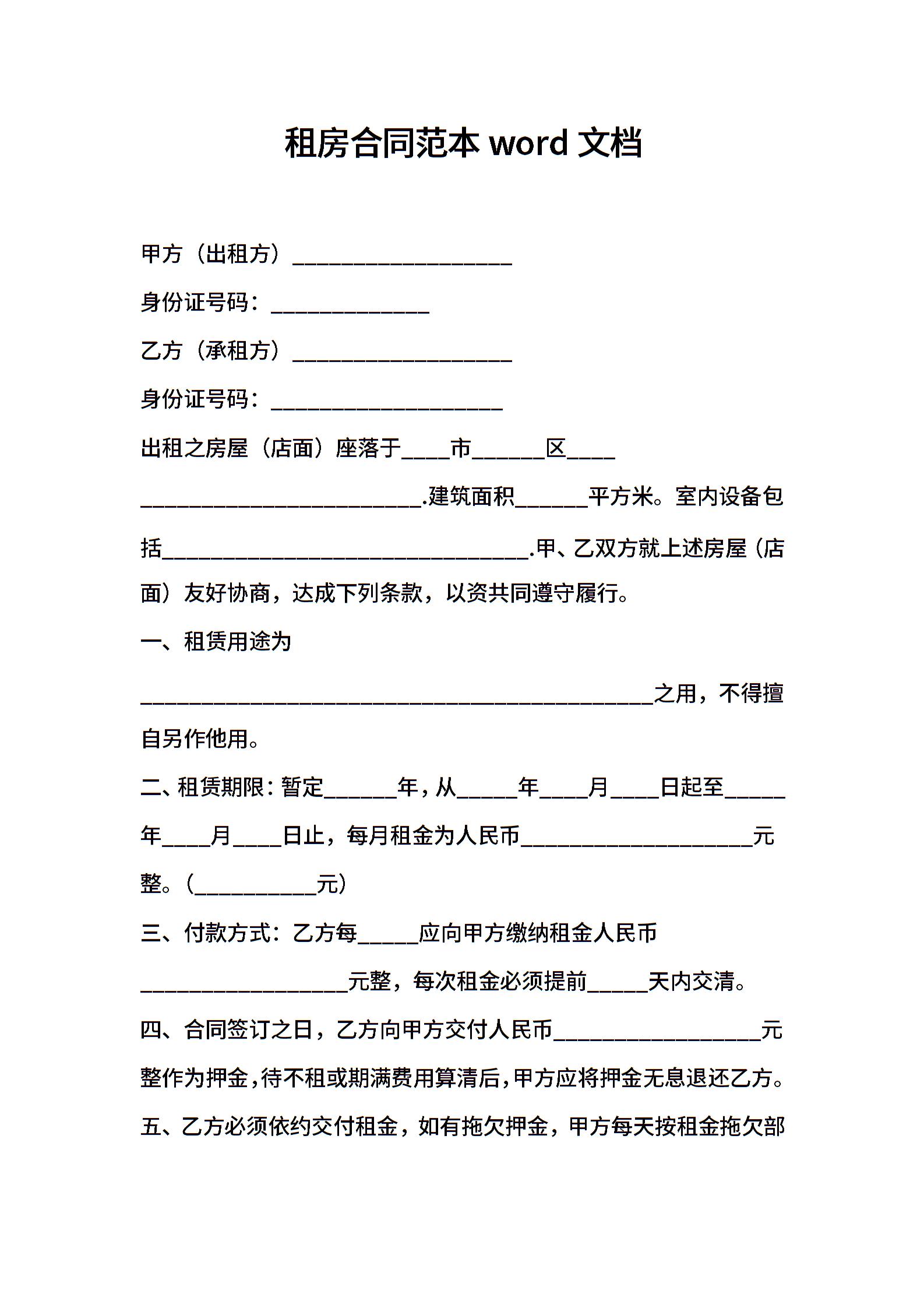 租房合同范本word文档