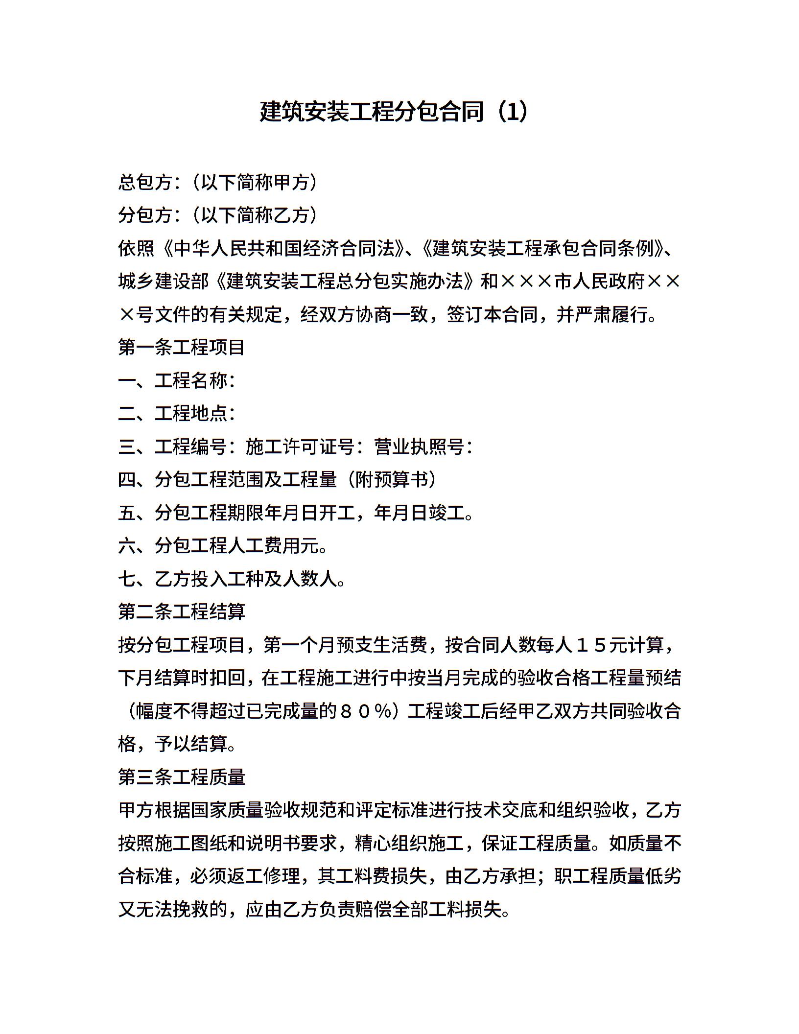 建筑安装工程分包合同(1)