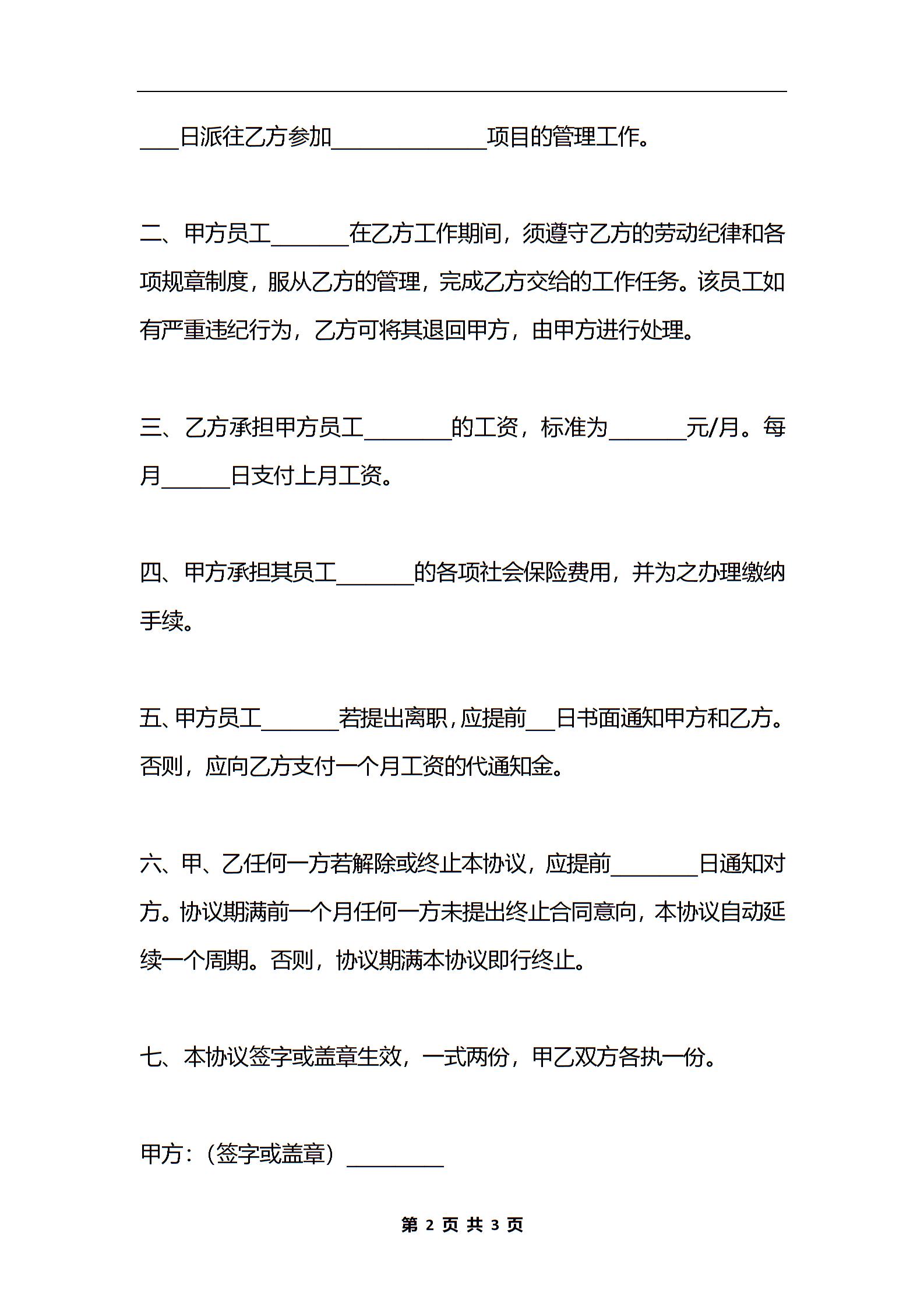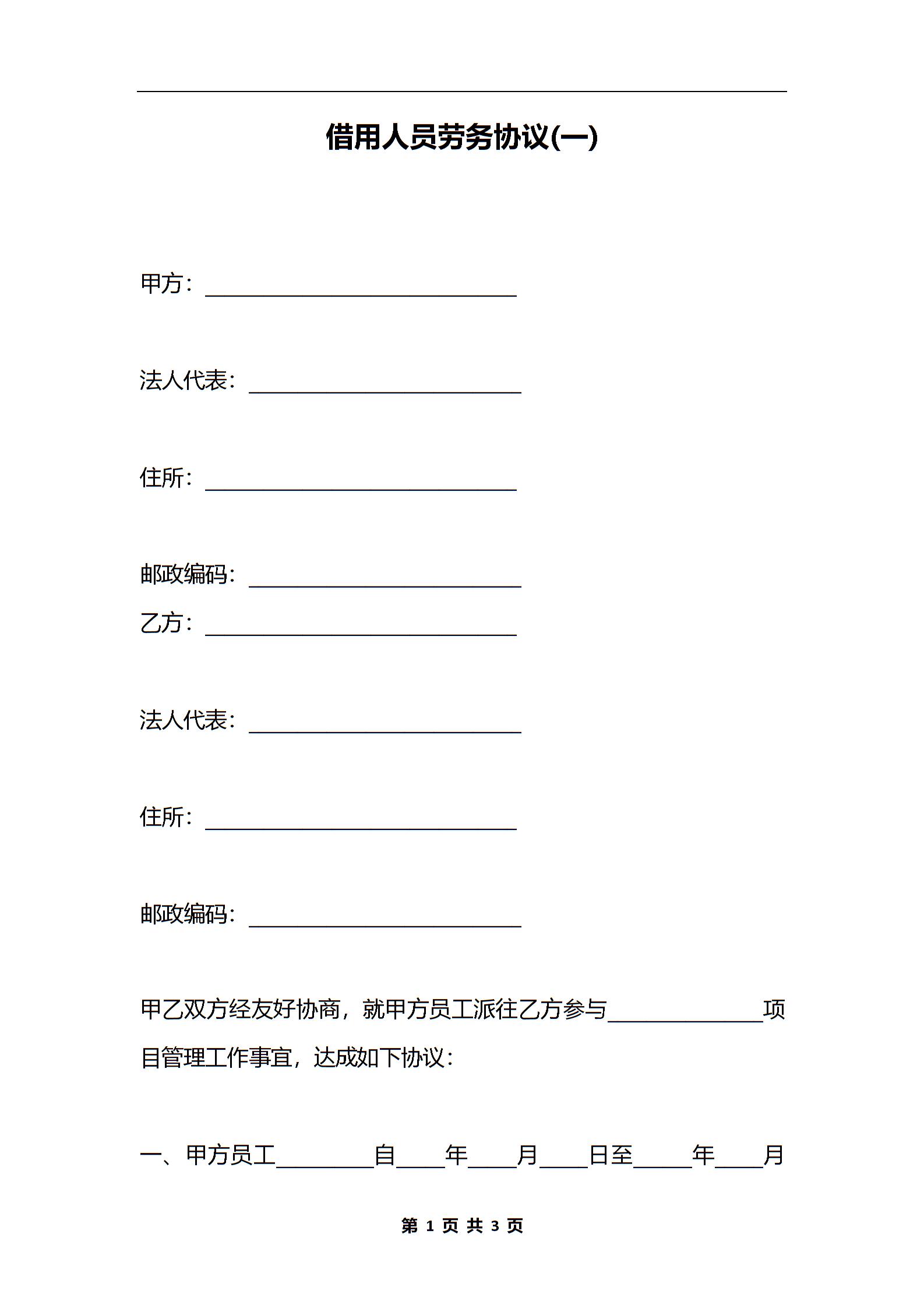 借用人员劳务协议(一)
