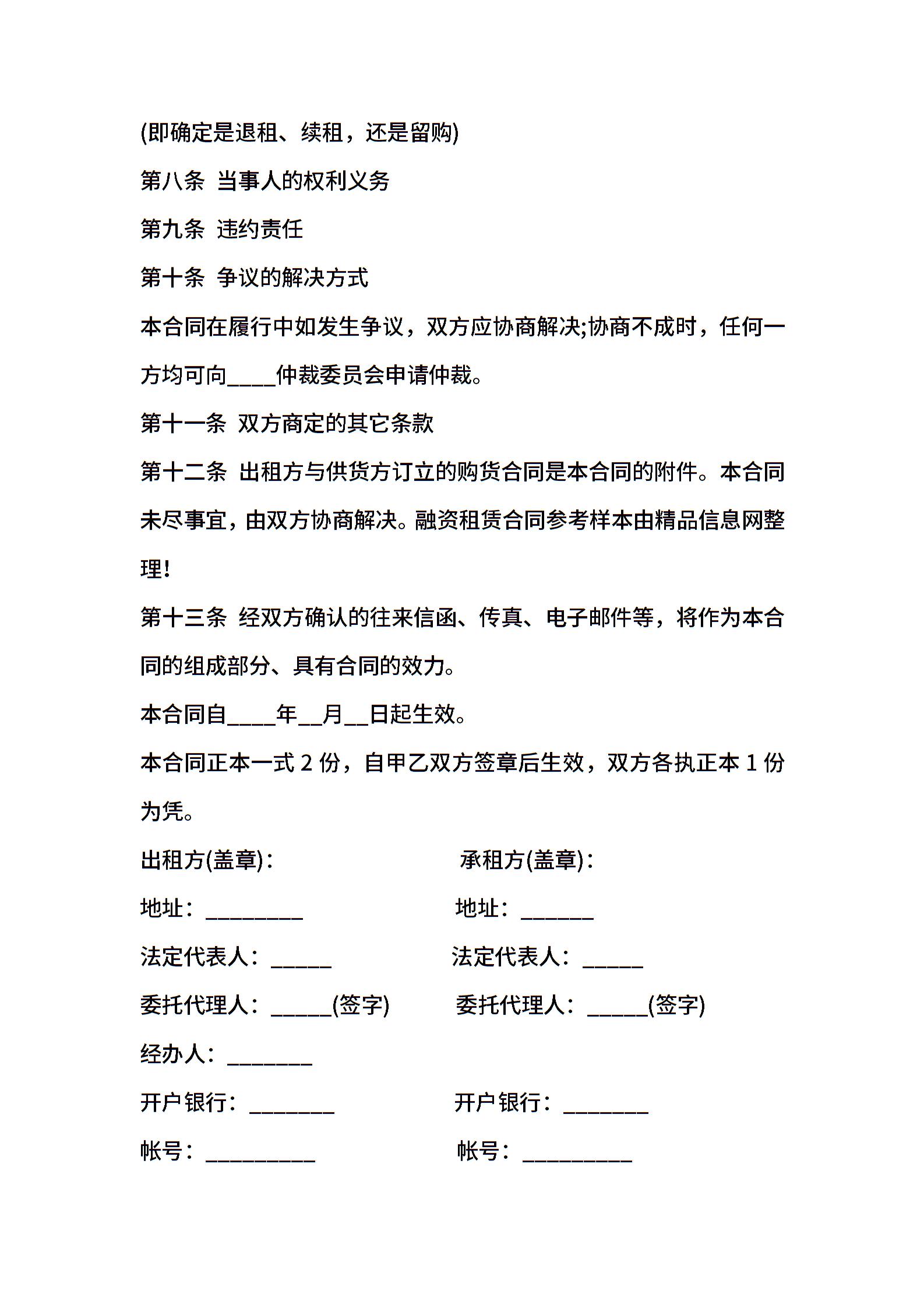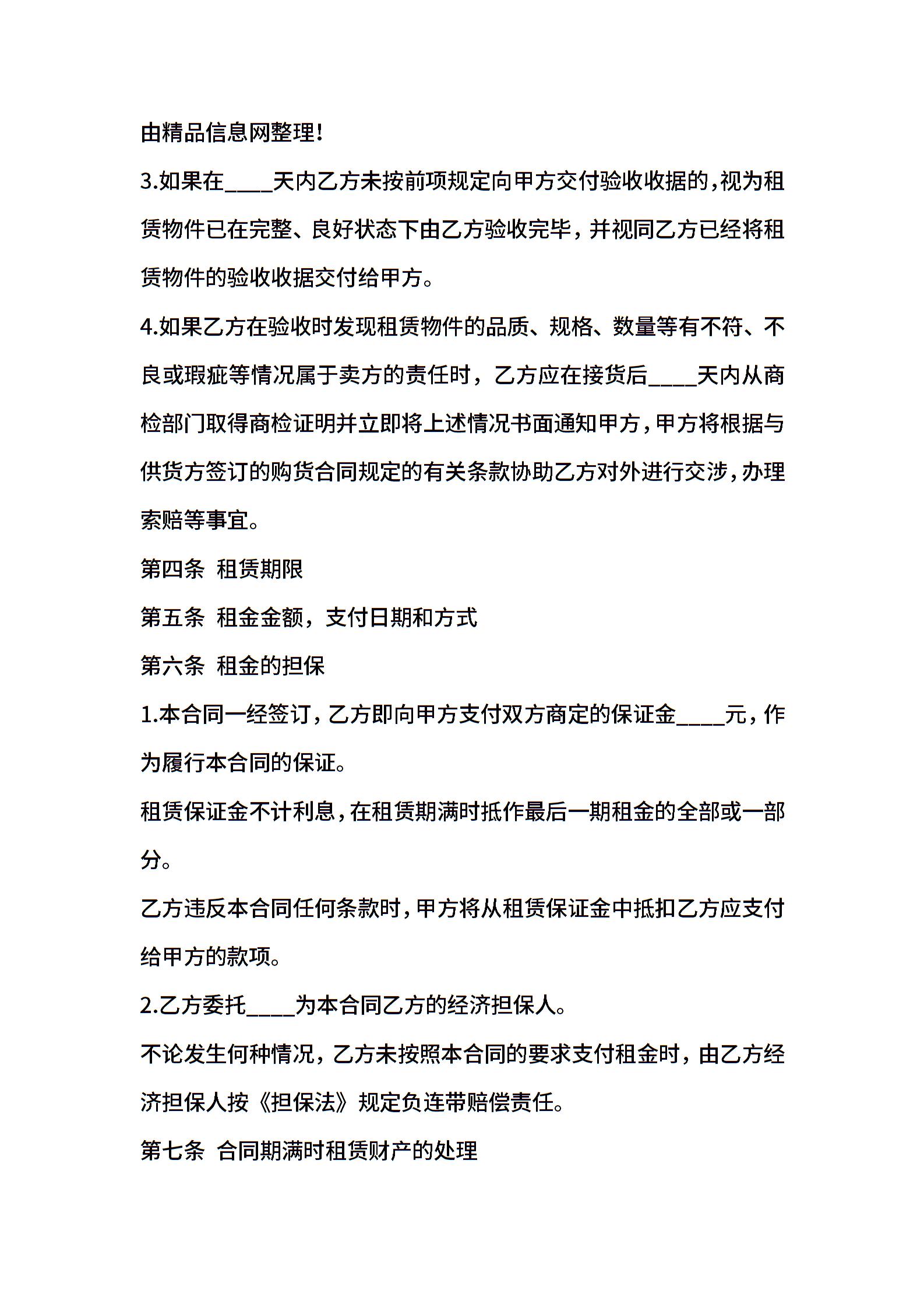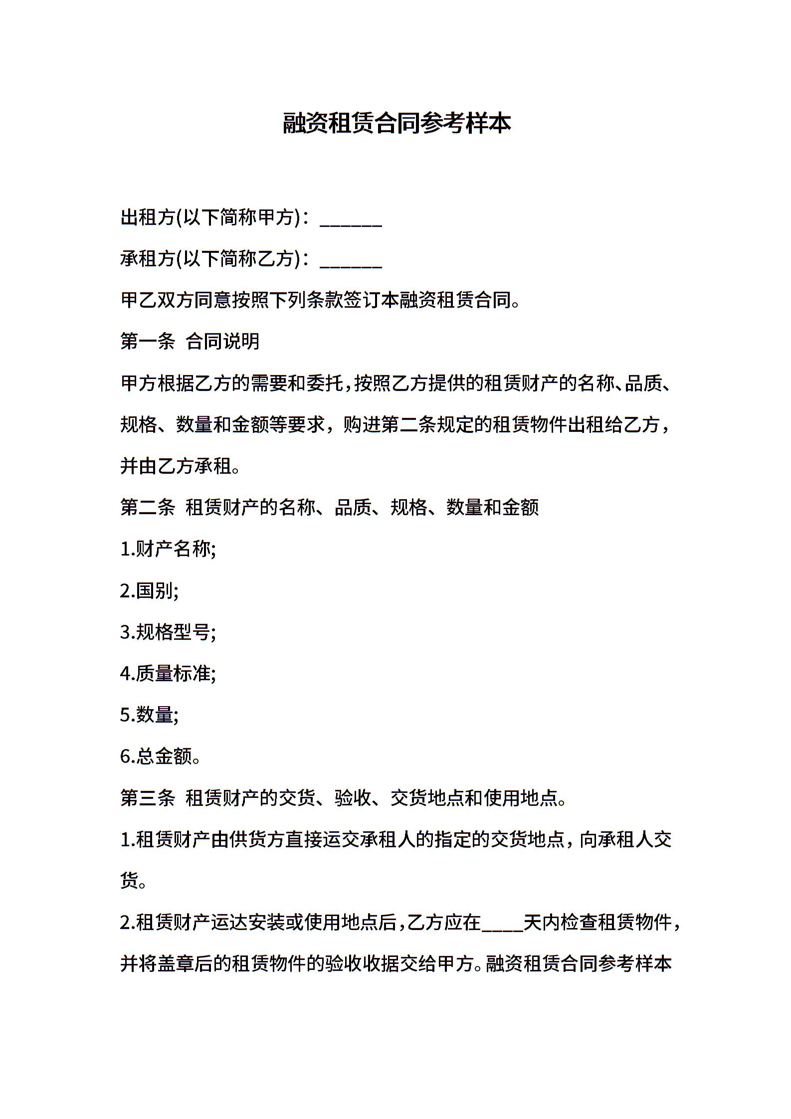 融资租赁合同参考样本