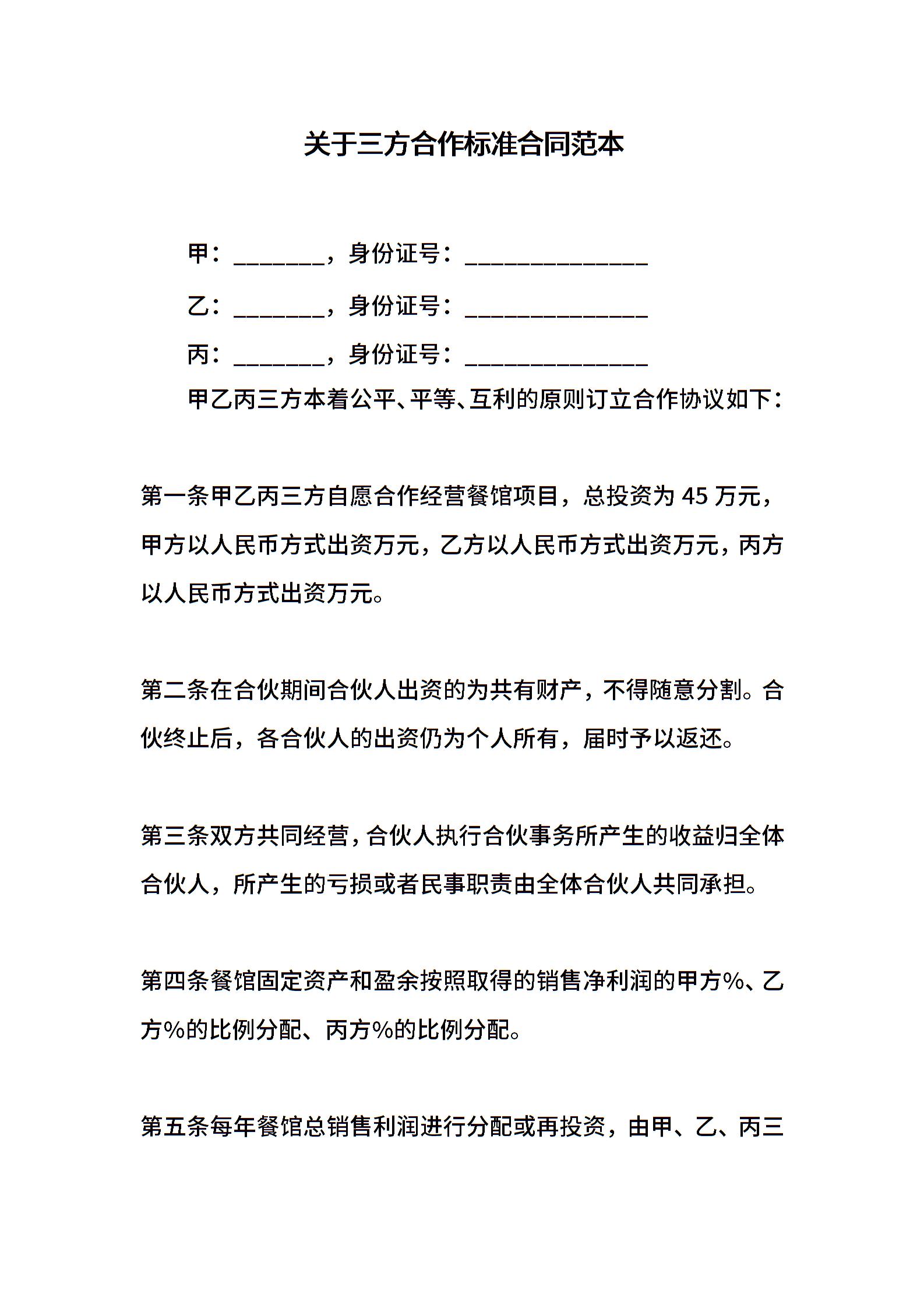 关于三方合作标准合同范本