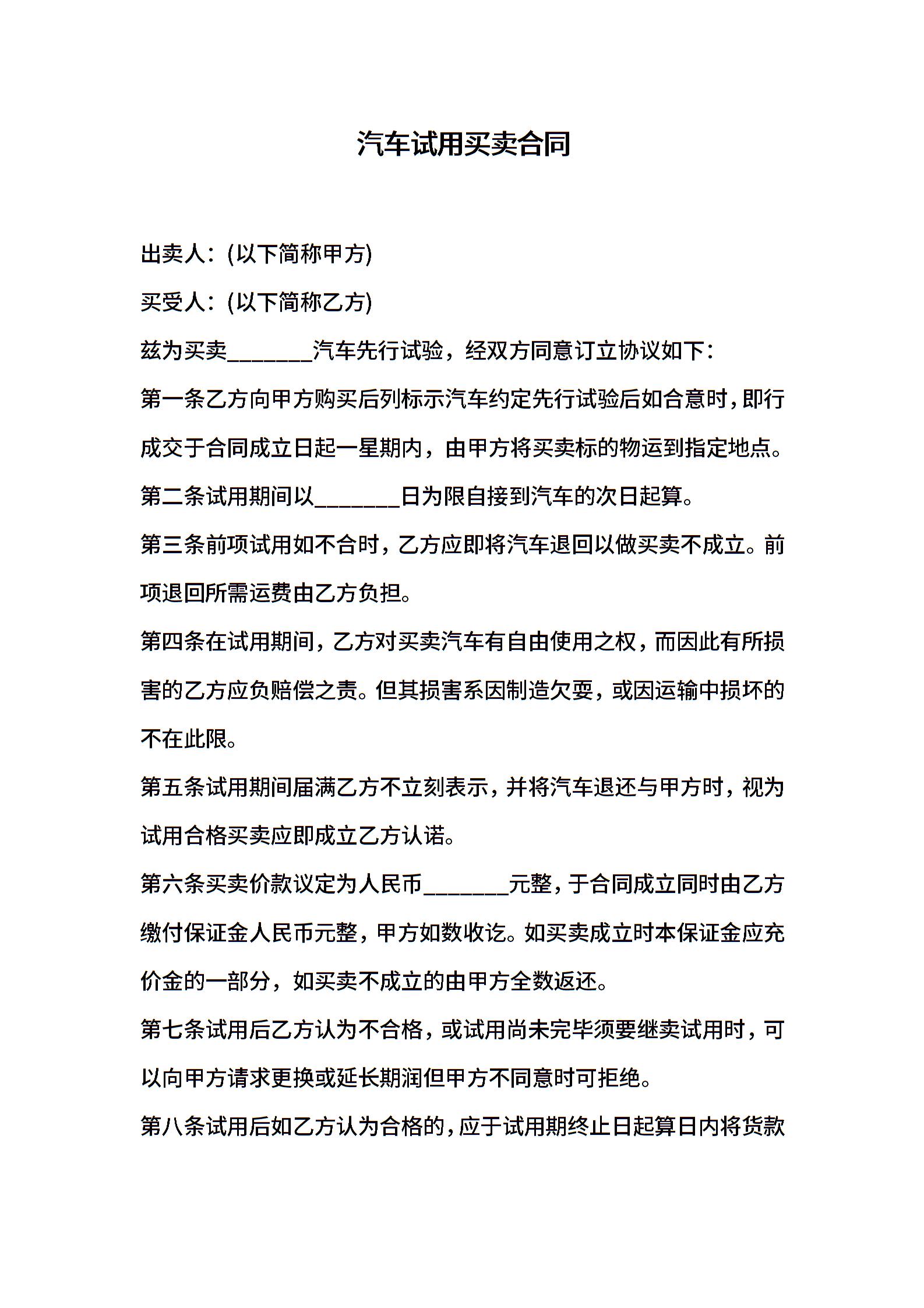 汽车试用买卖合同