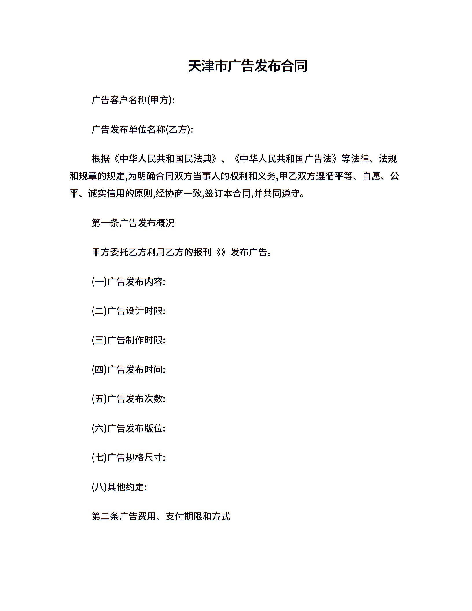 天津市广告发布合同 广告合同 广告承揽合同.doc