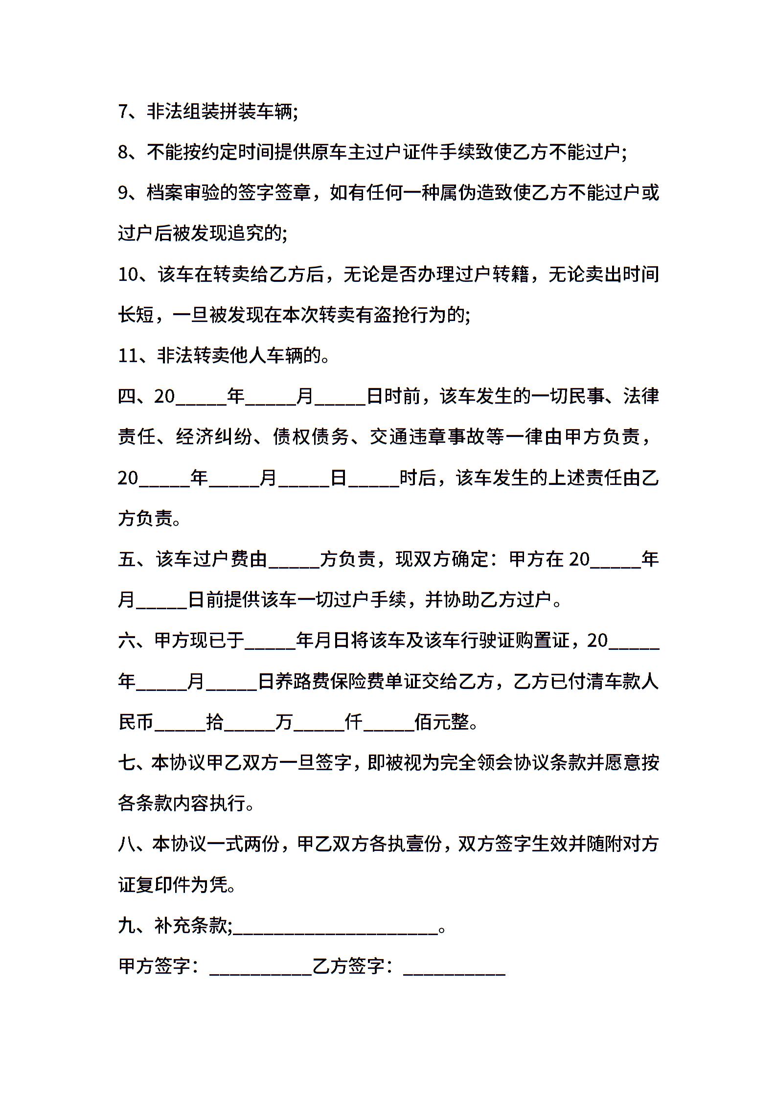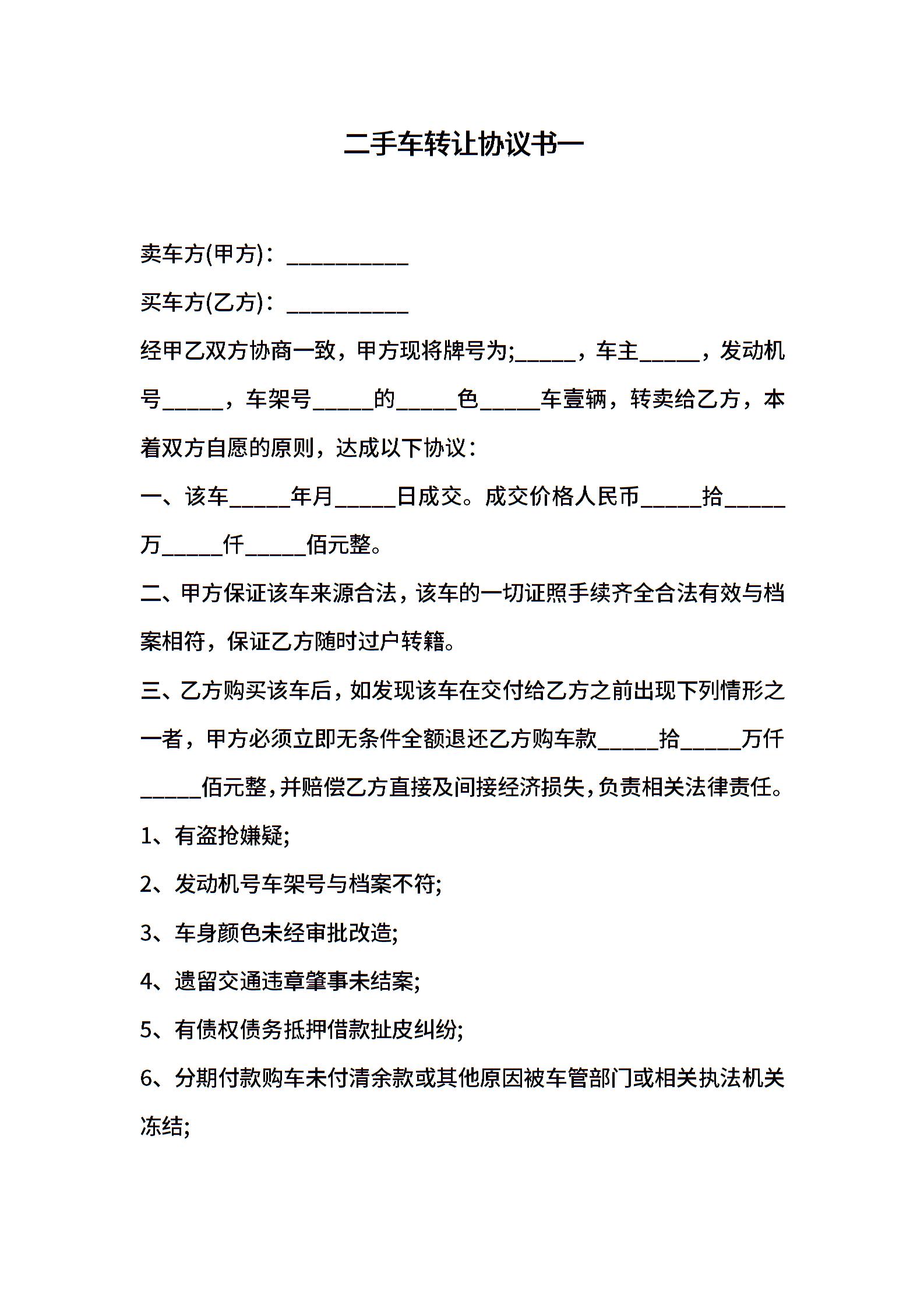 二手车转让协议书一