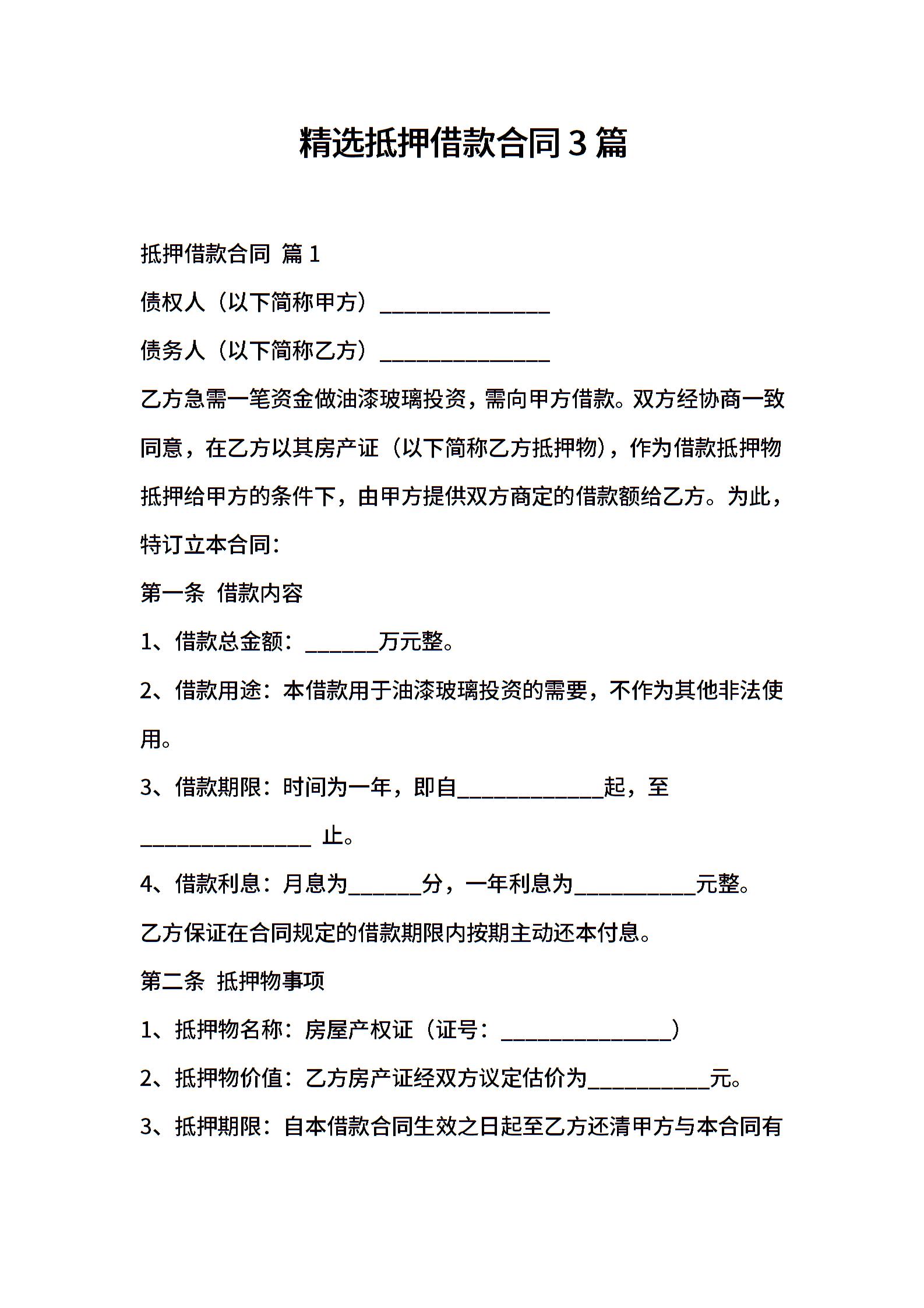 精选抵押借款合同3篇