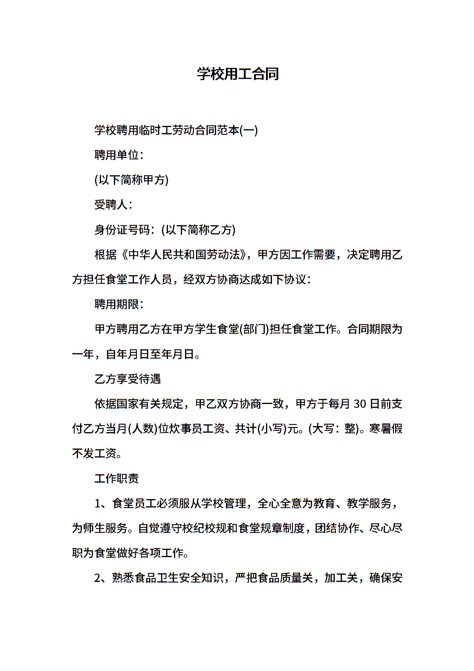 学校用工合同