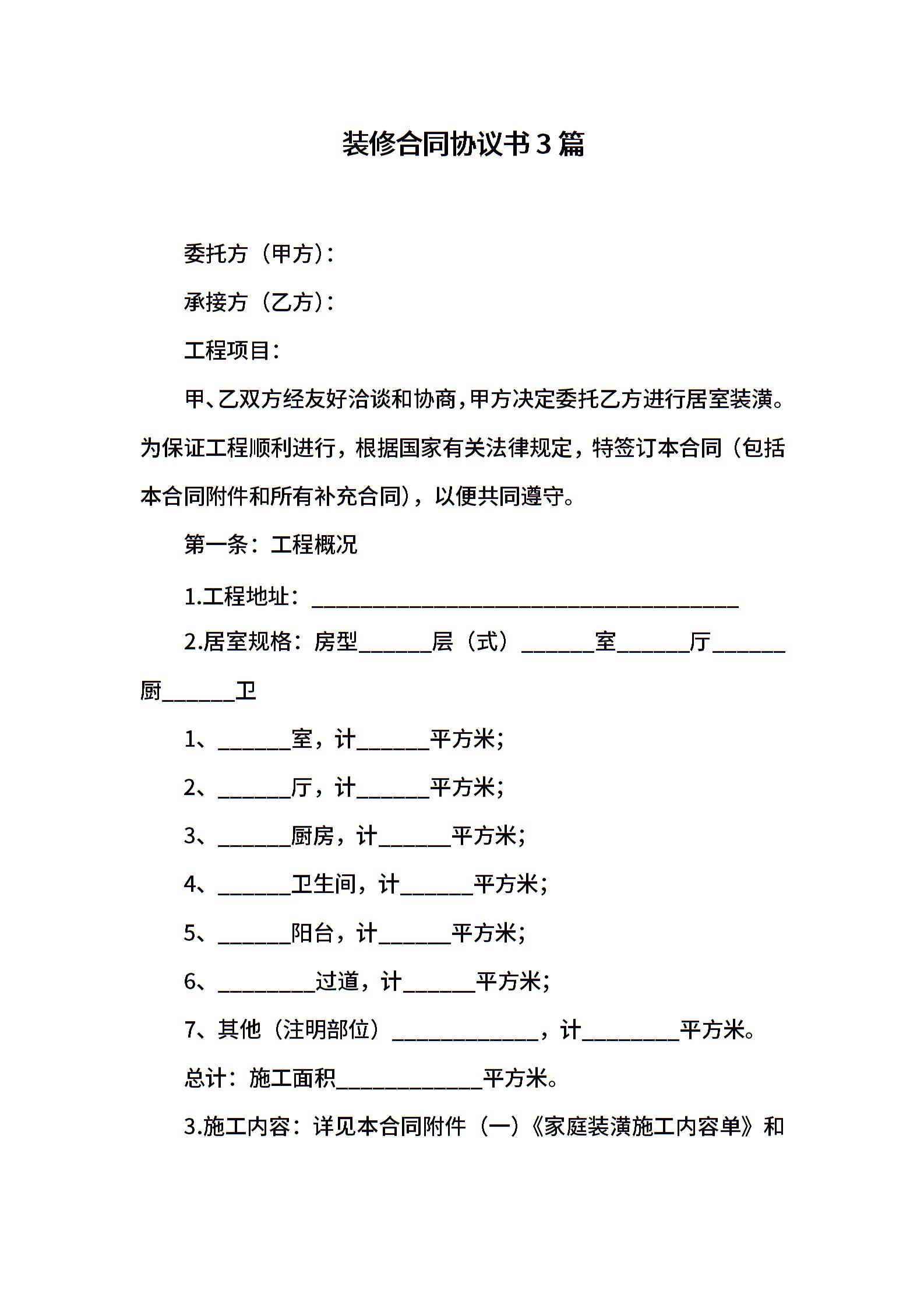 装修合同协议书3篇
