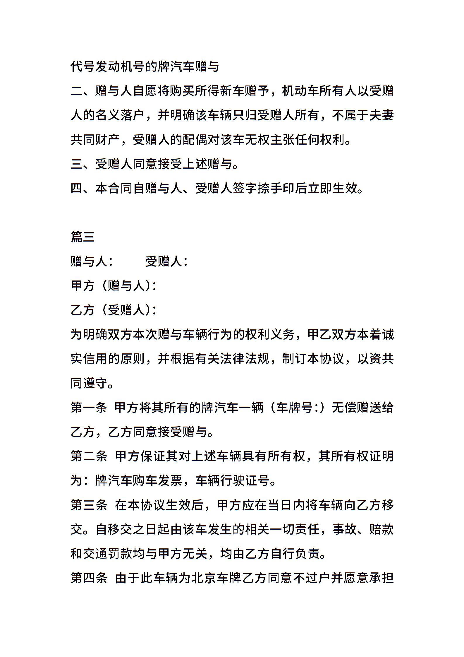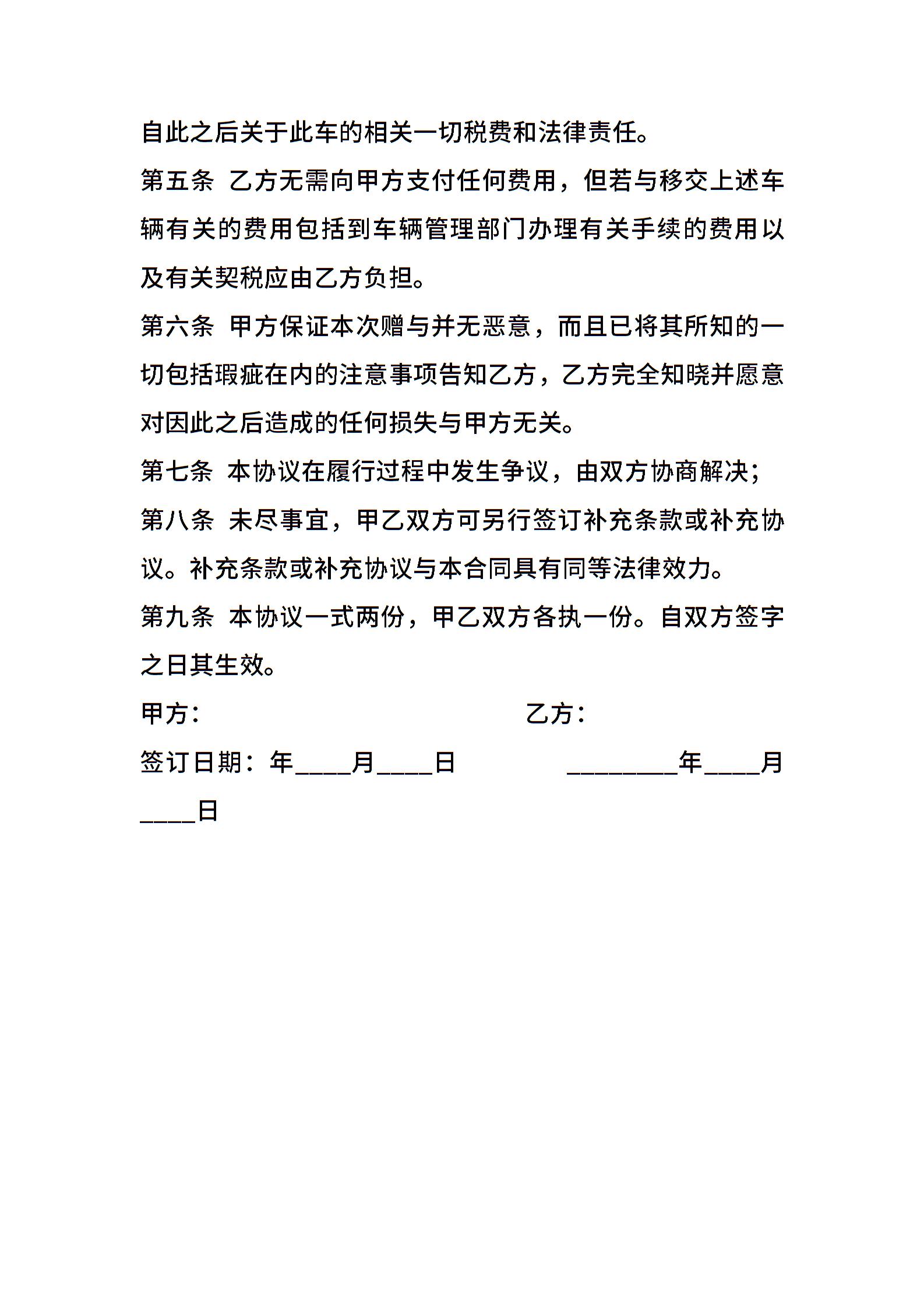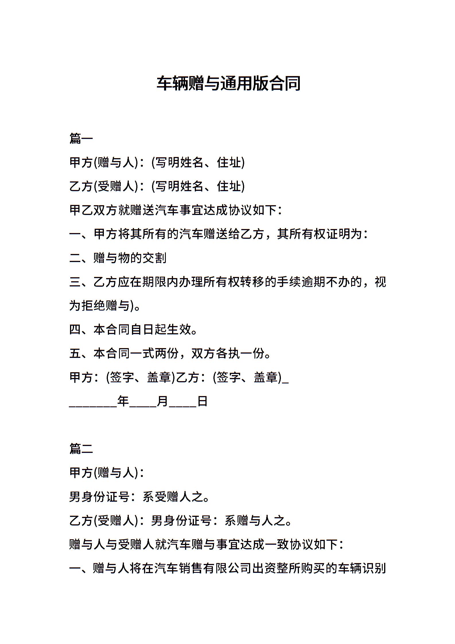 车辆赠与通用版合同