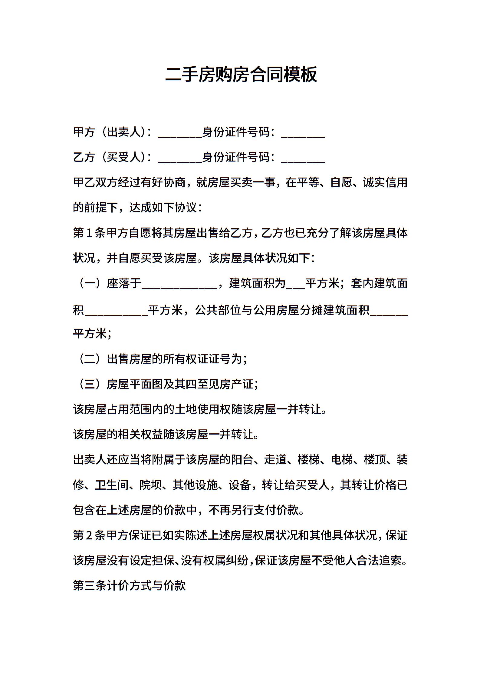二手房购房合同模板