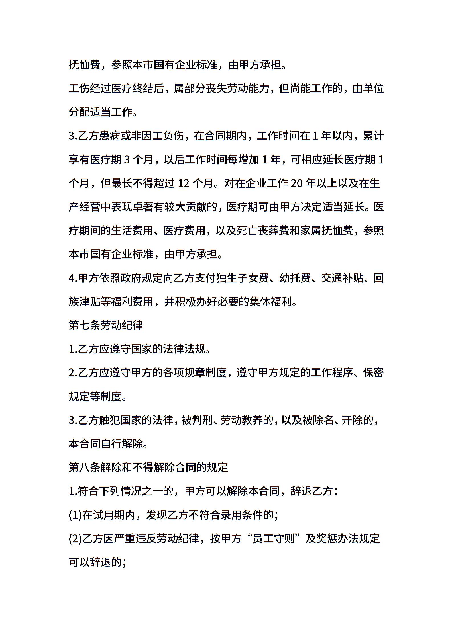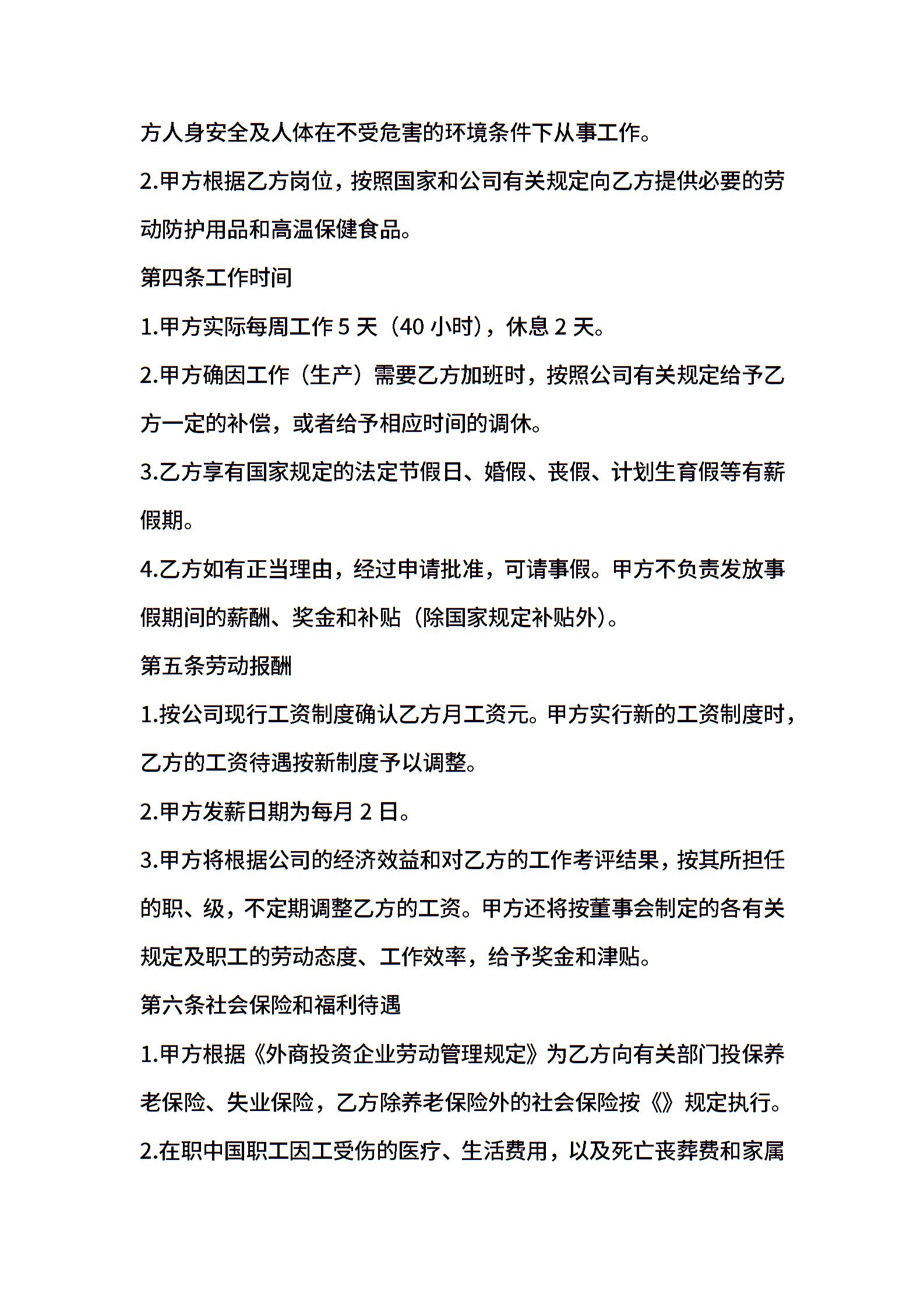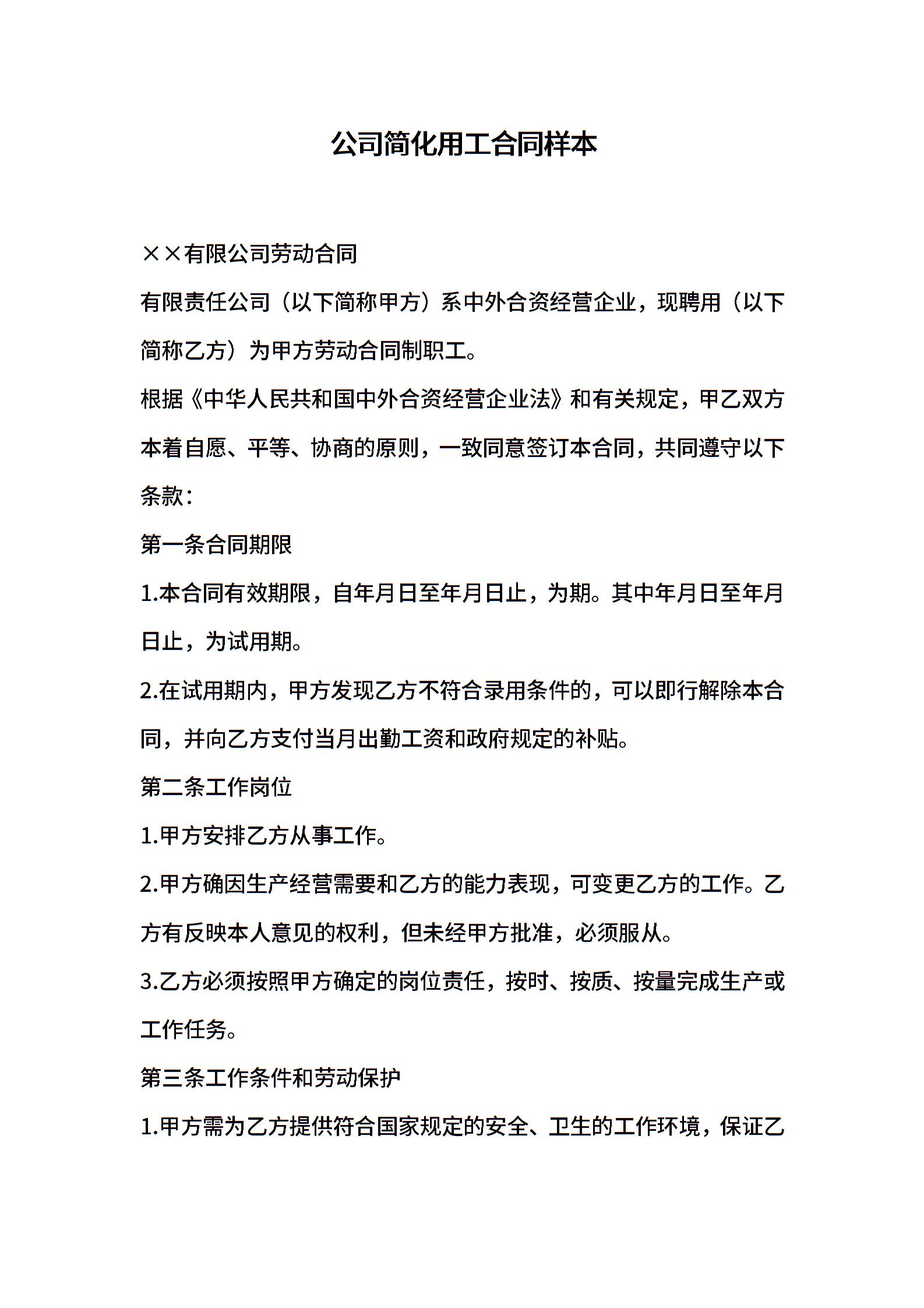 公司简化用工合同样本