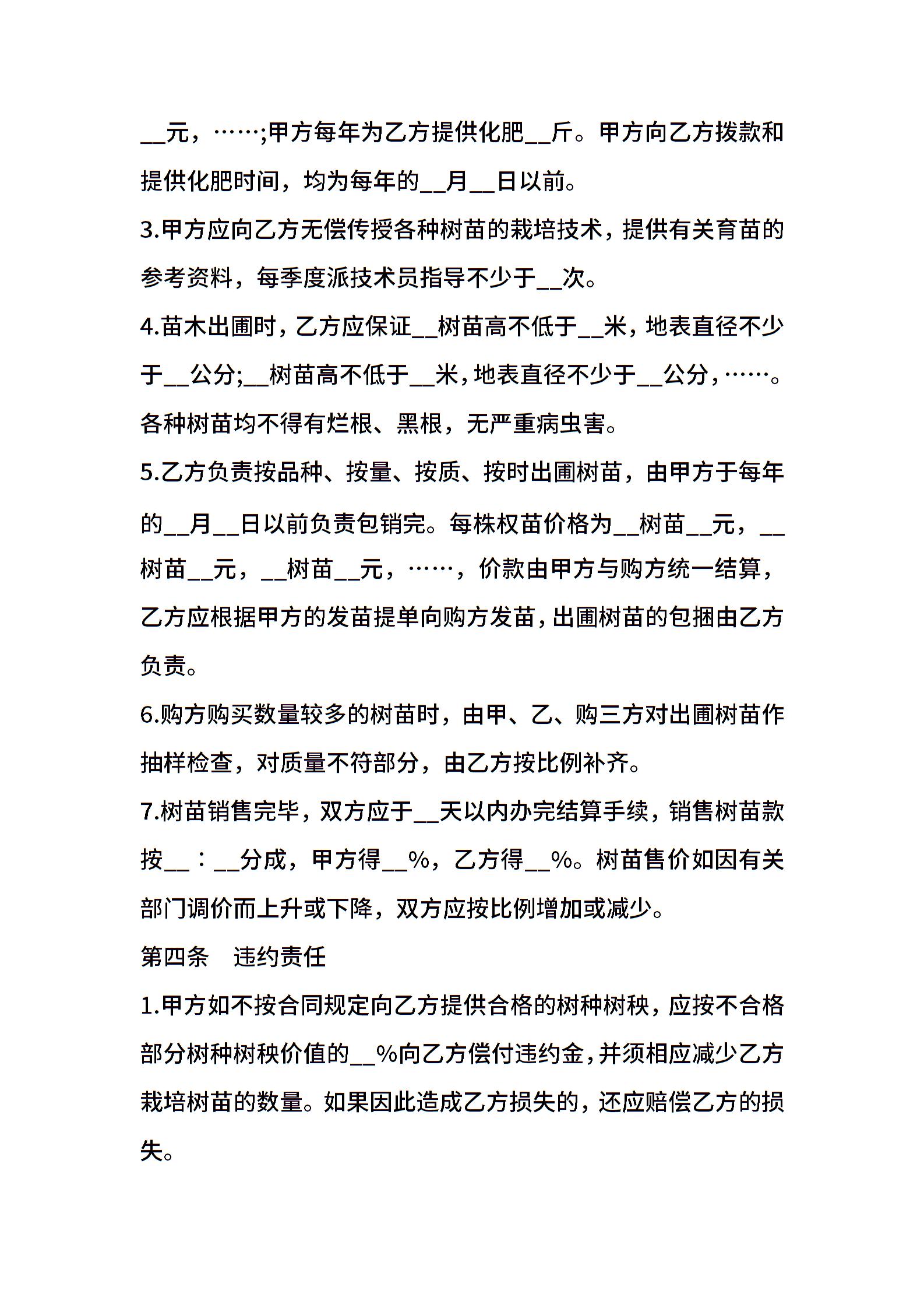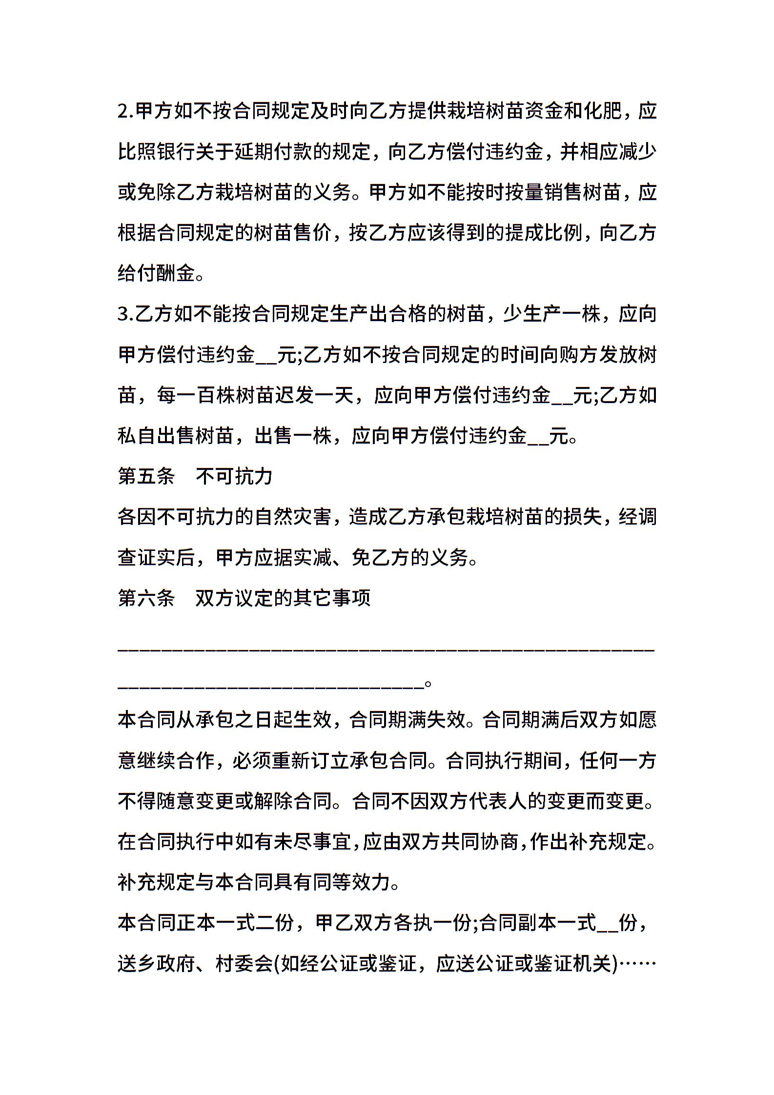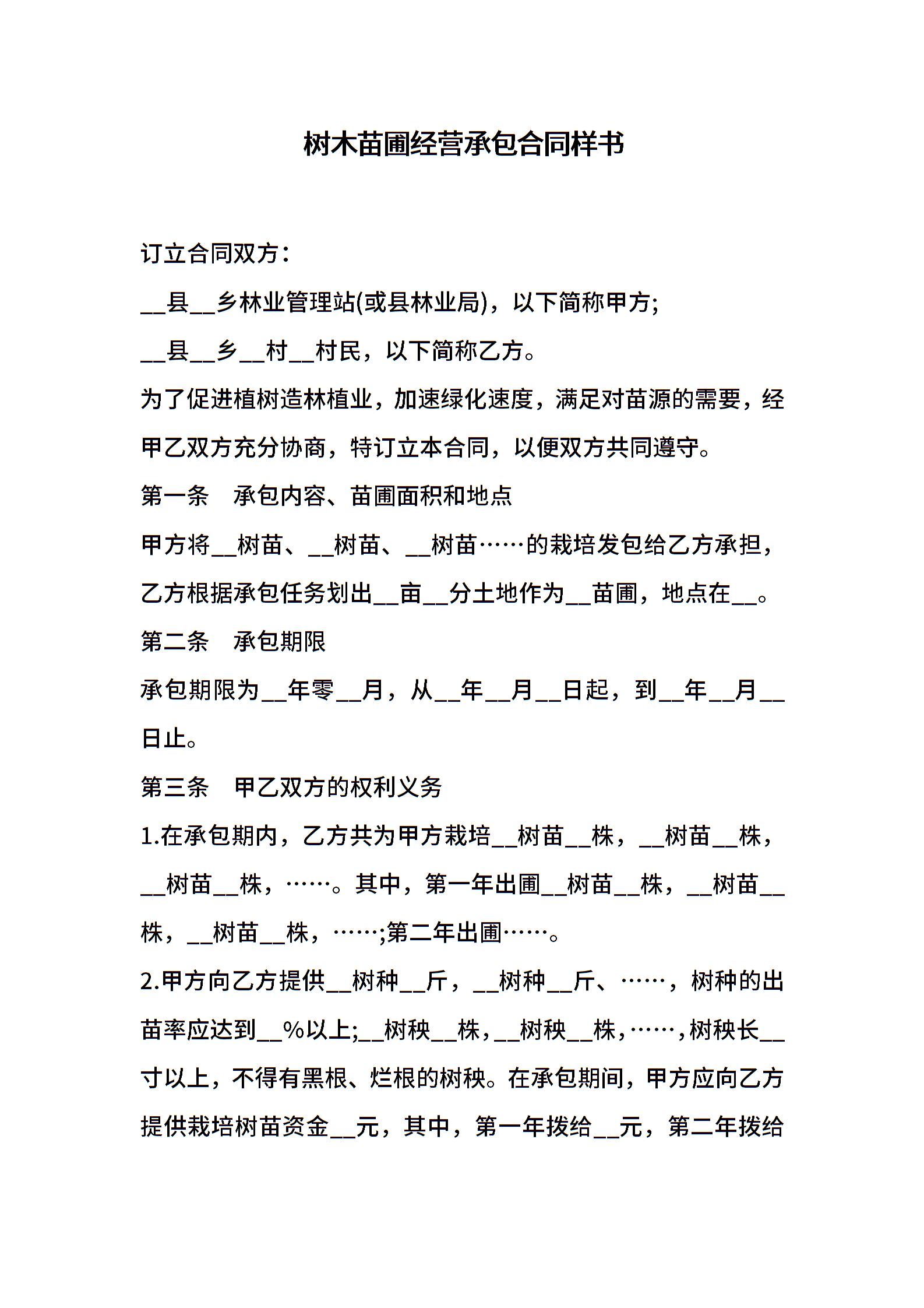 树木苗圃经营承包合同样书