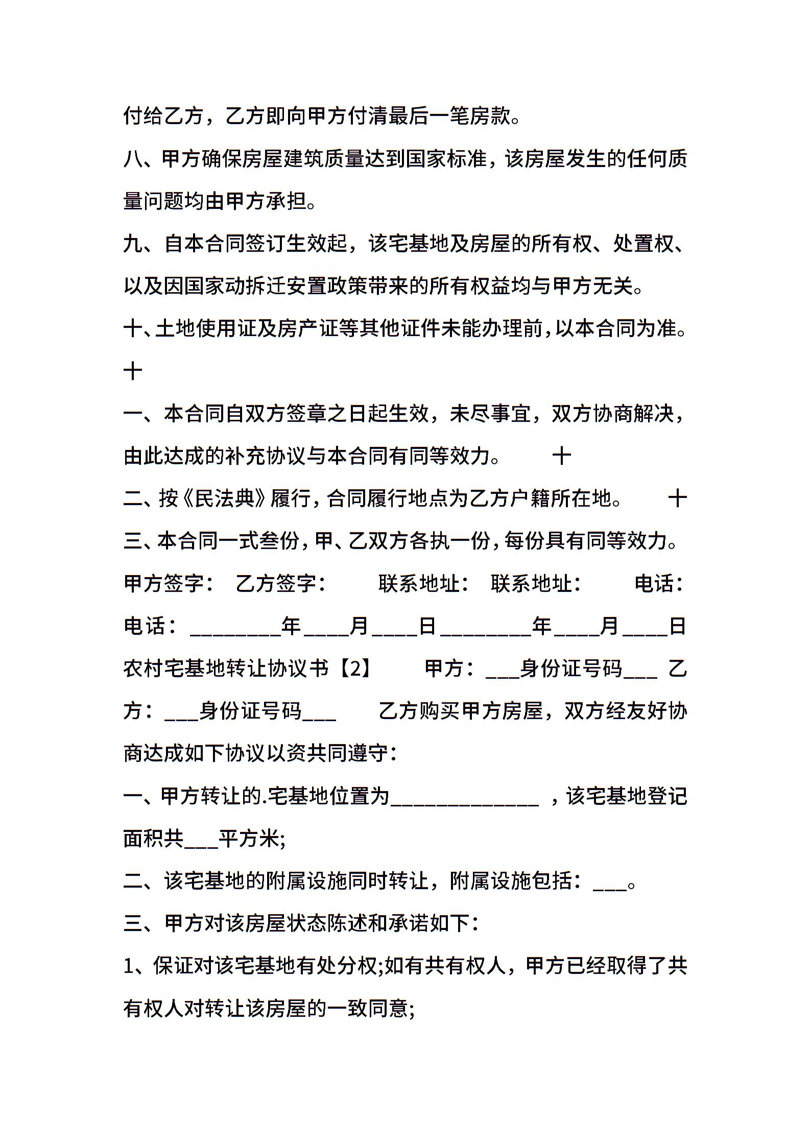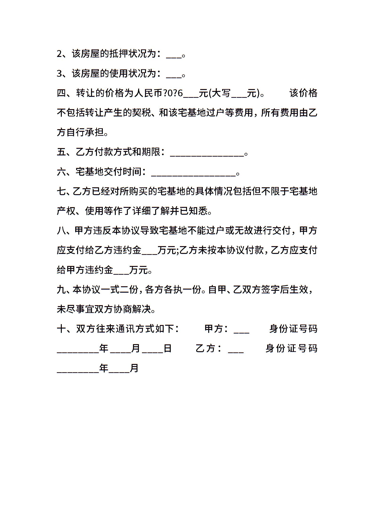 农村宅基地买卖通用版合同