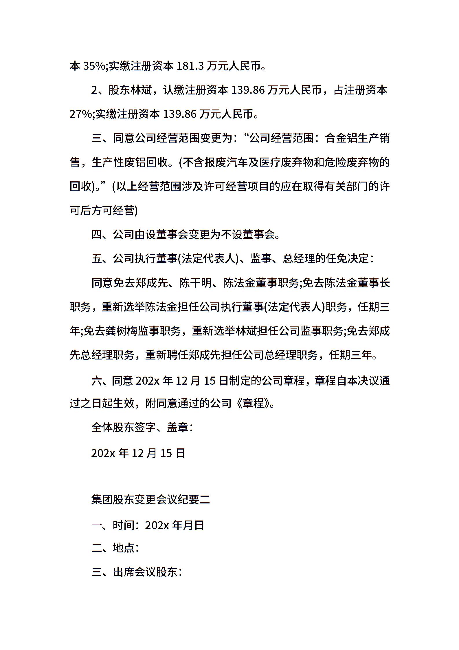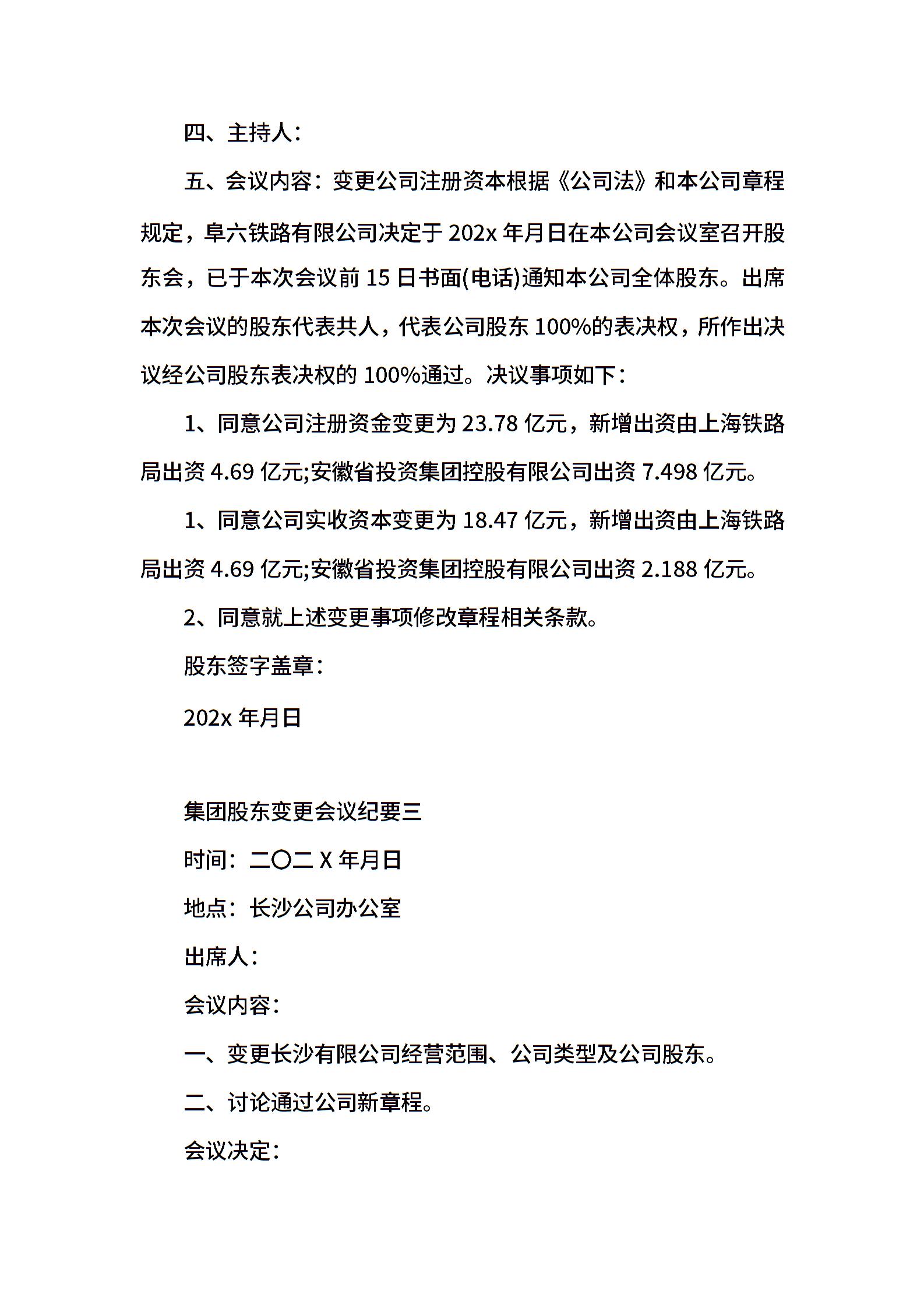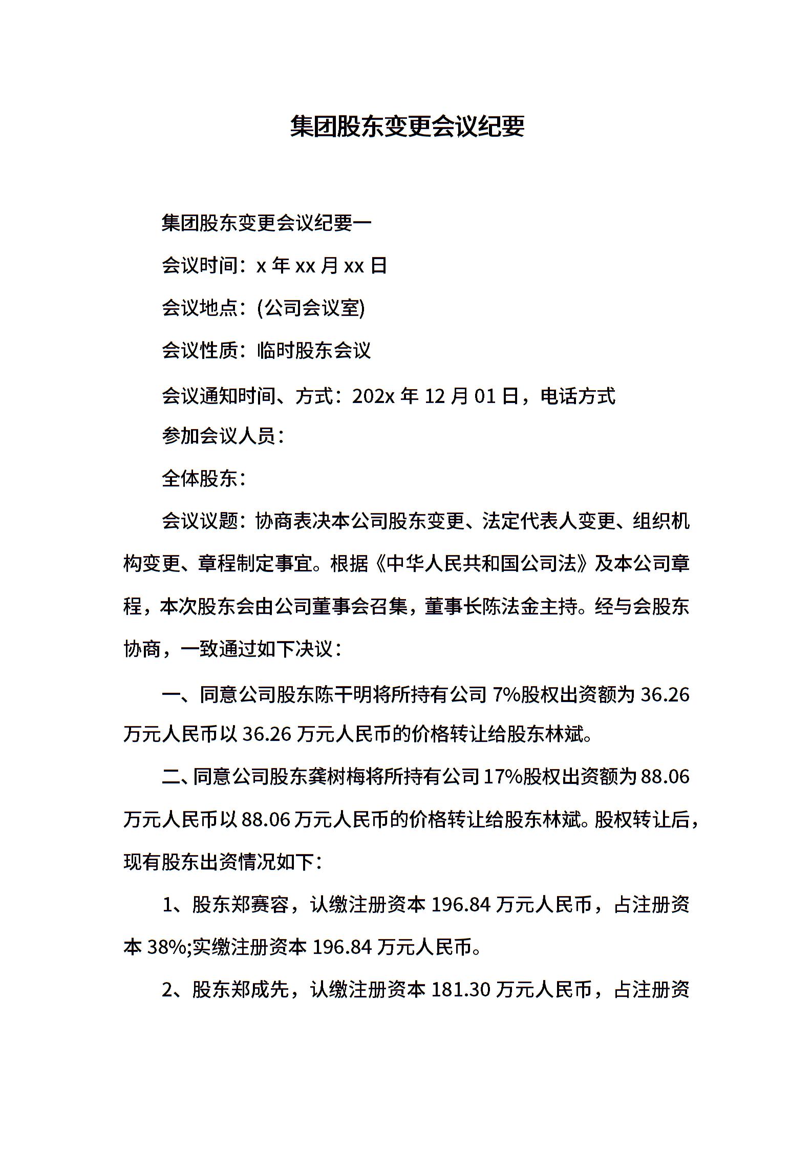 集团股东变更会议纪要