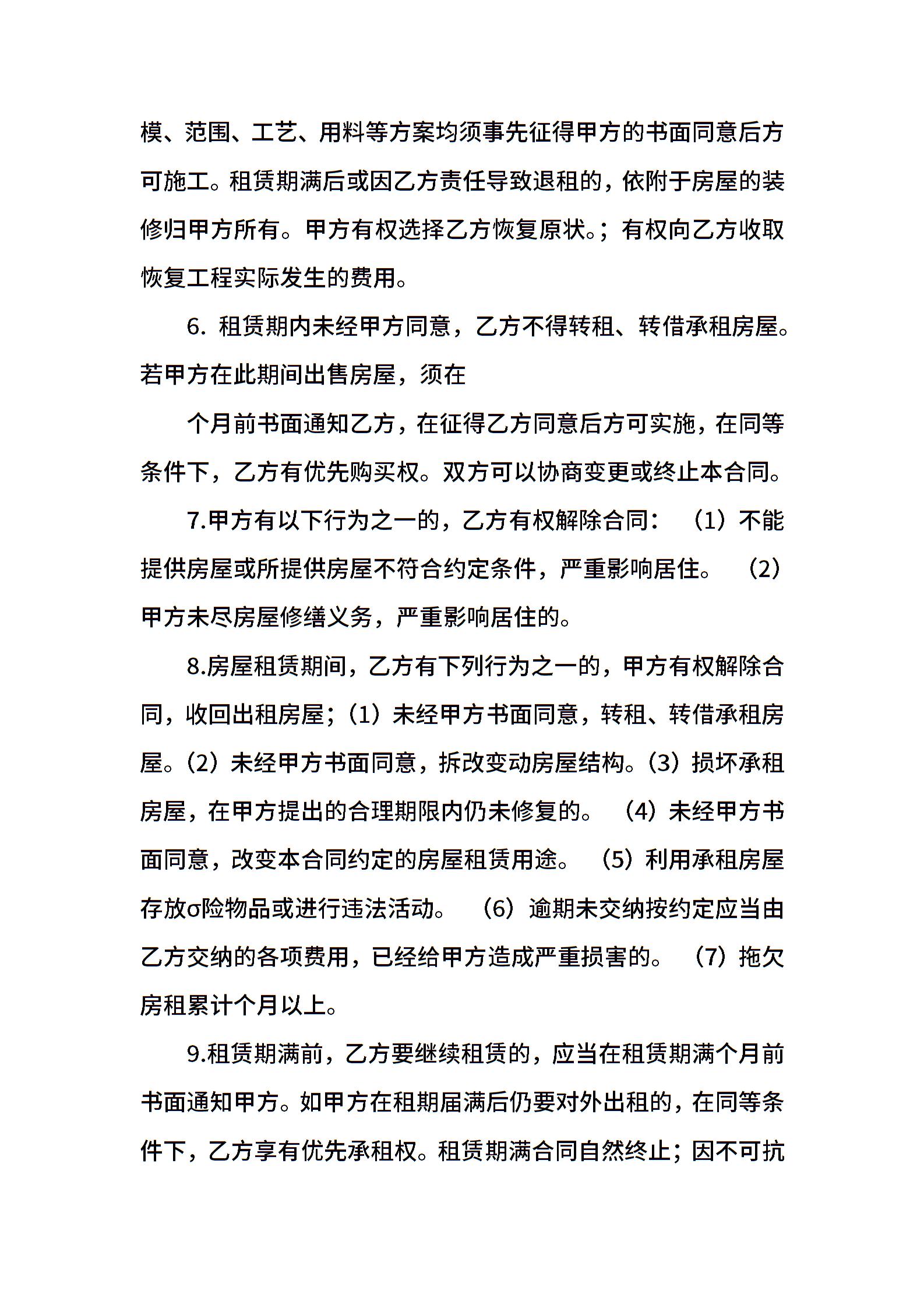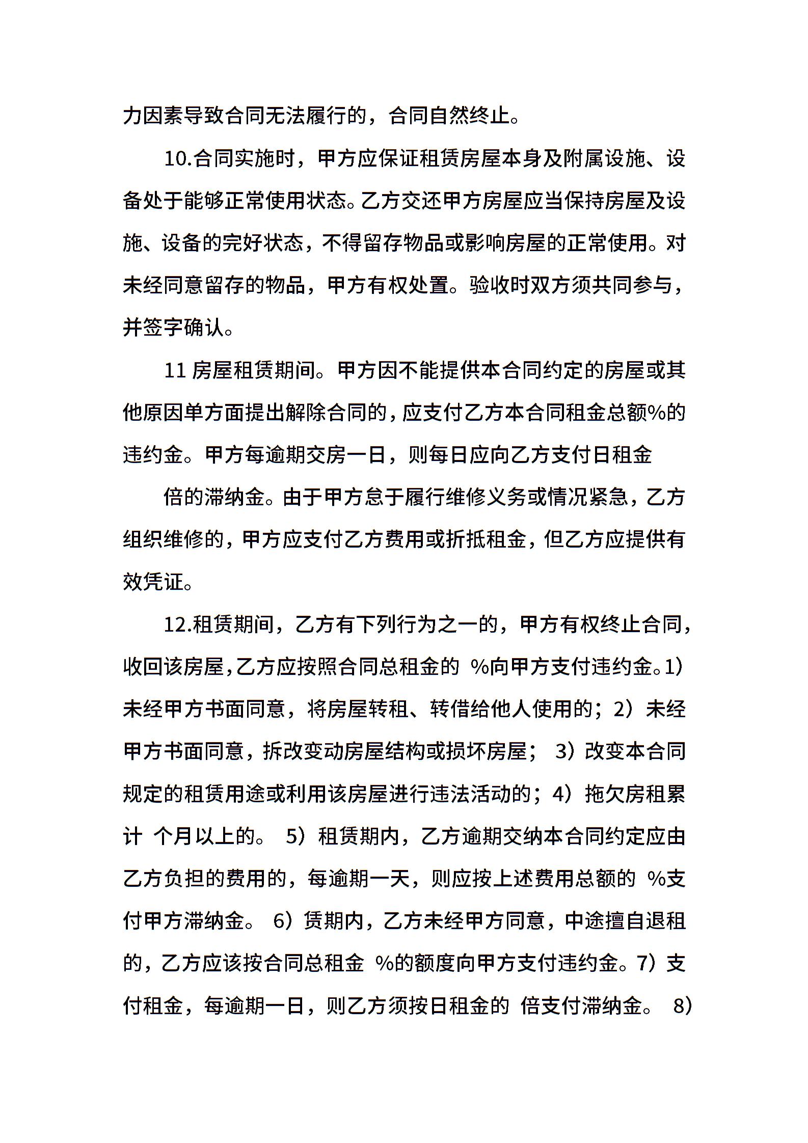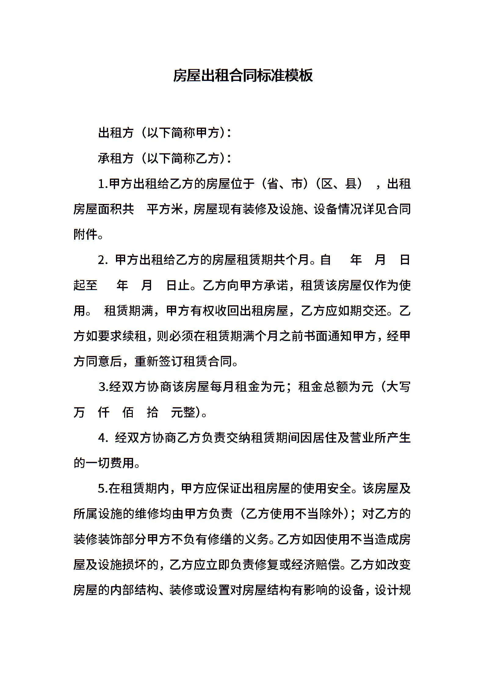 房屋出租合同标准模板