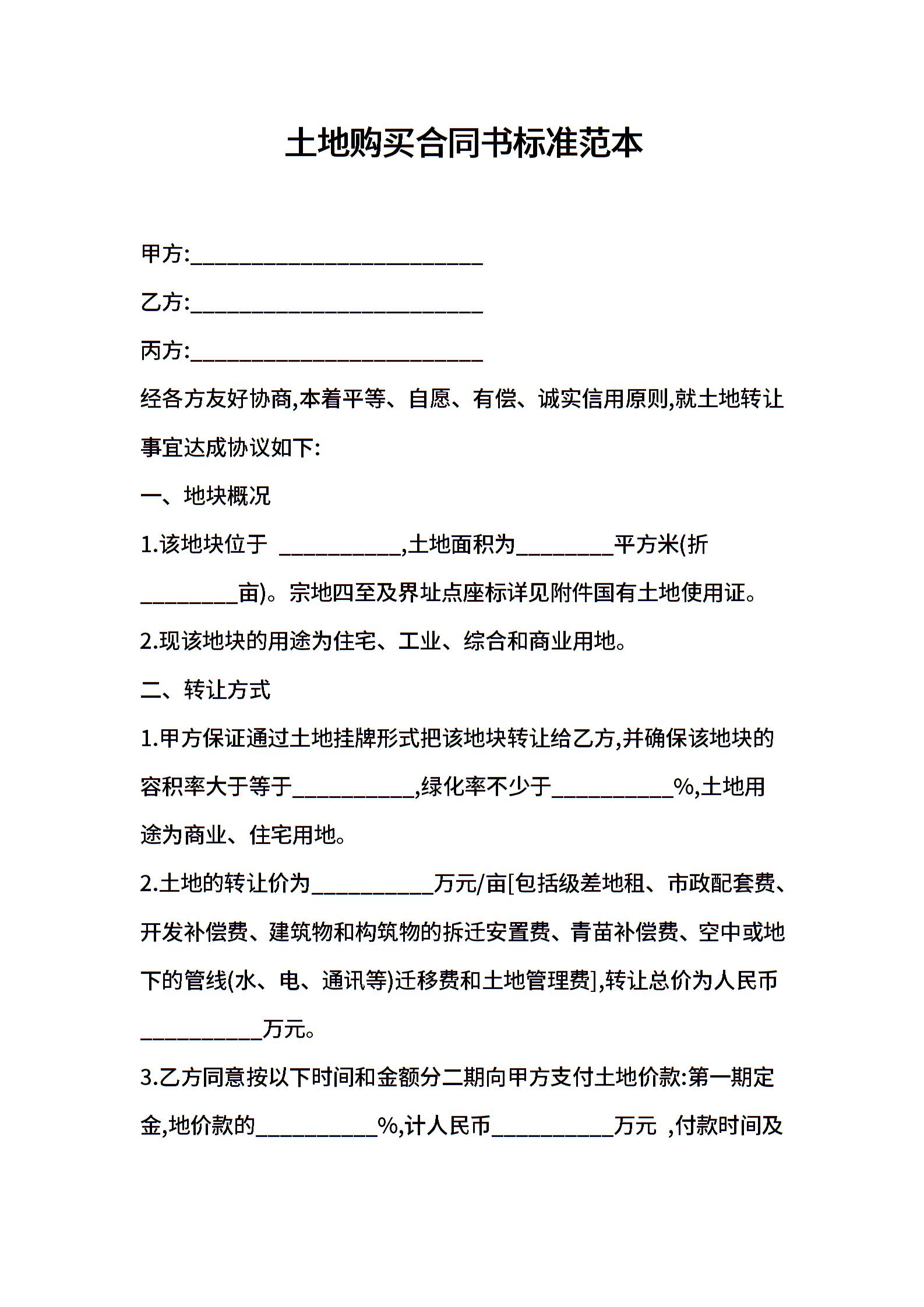土地购买合同书标准范本