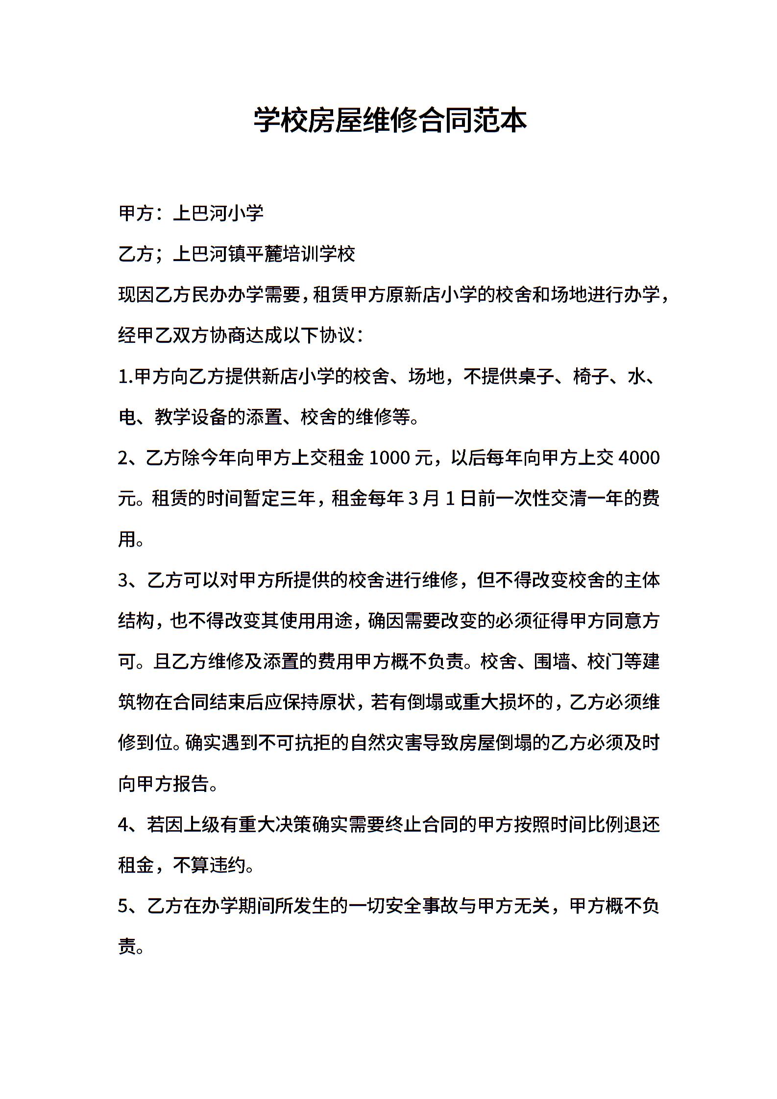 学校房屋维修合同范本