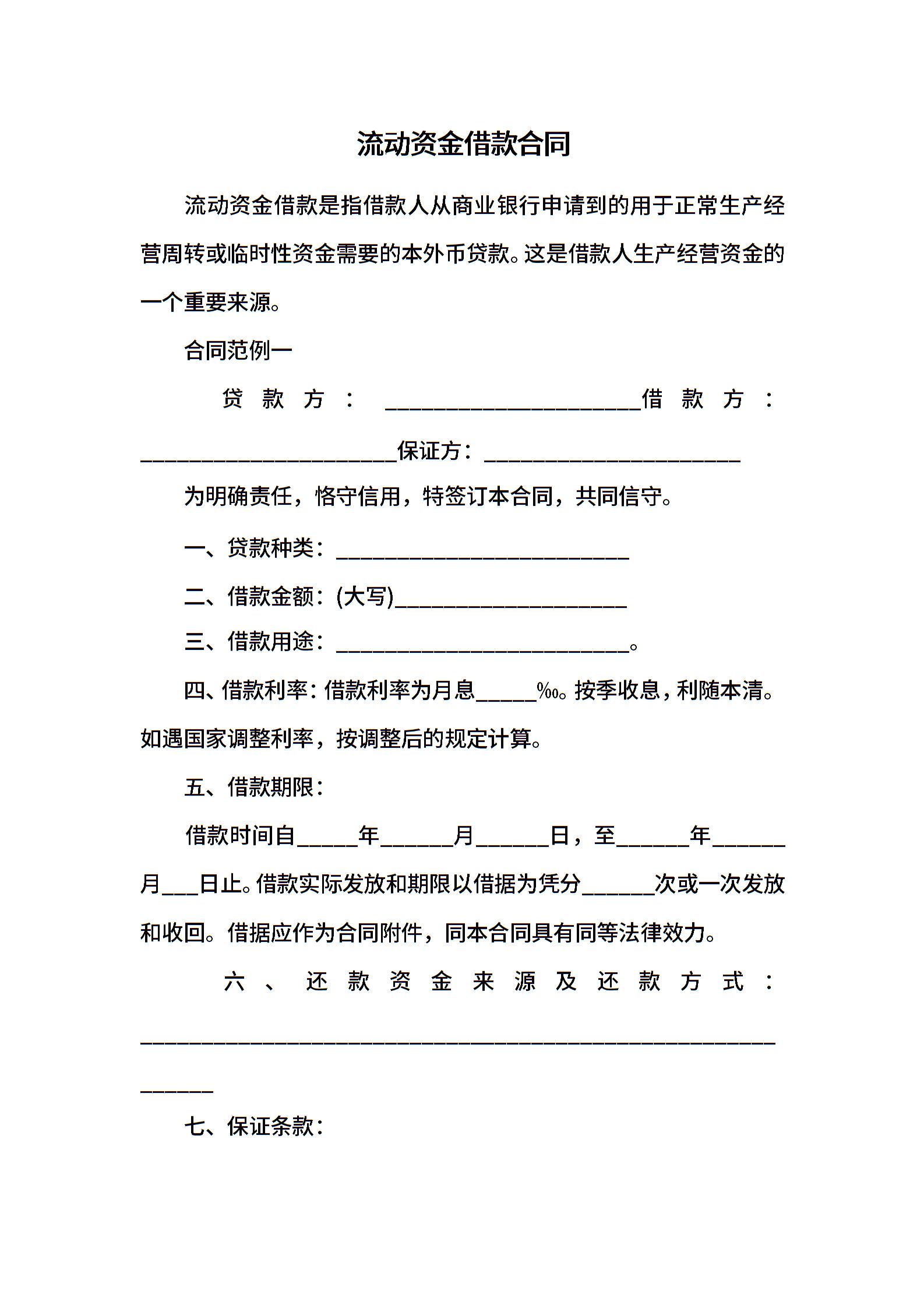 流动资金借款合同