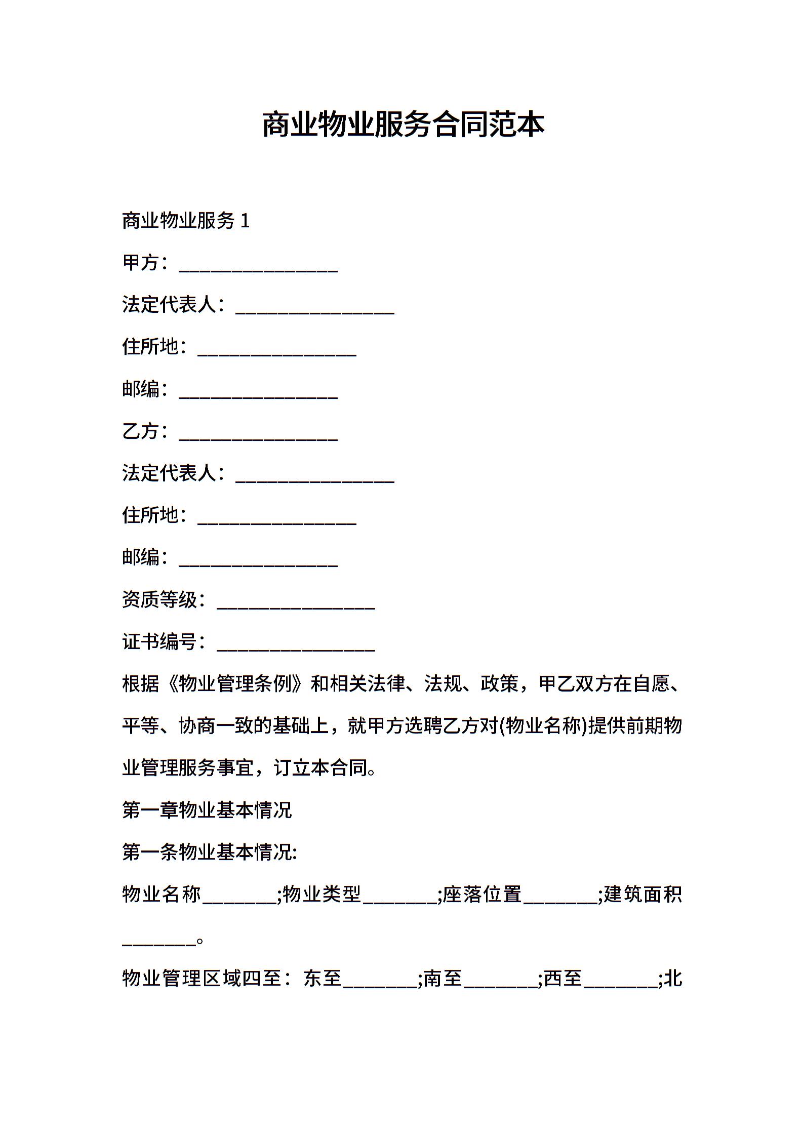 商业物业服务合同范本