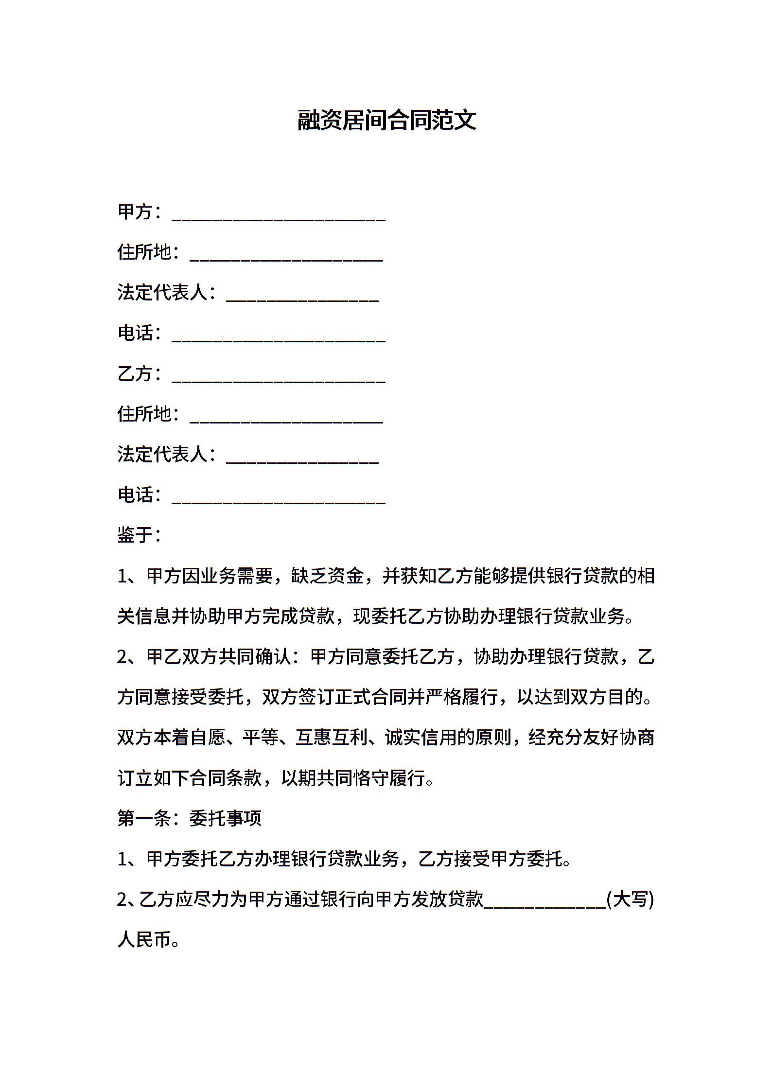 融资居间合同范文