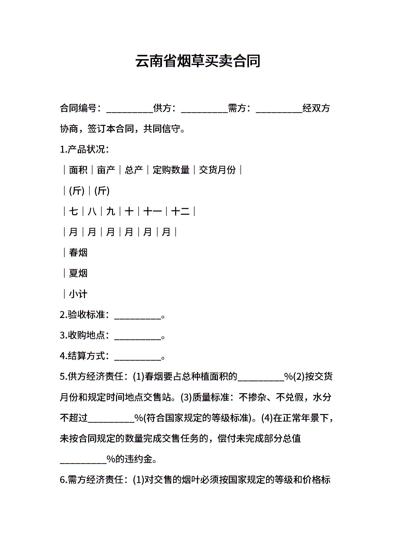 云南省烟草买卖合同