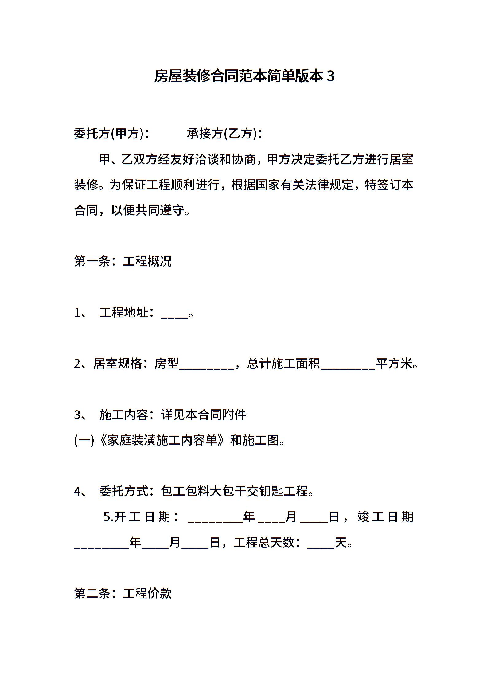 房屋装修合同范本简单版本3