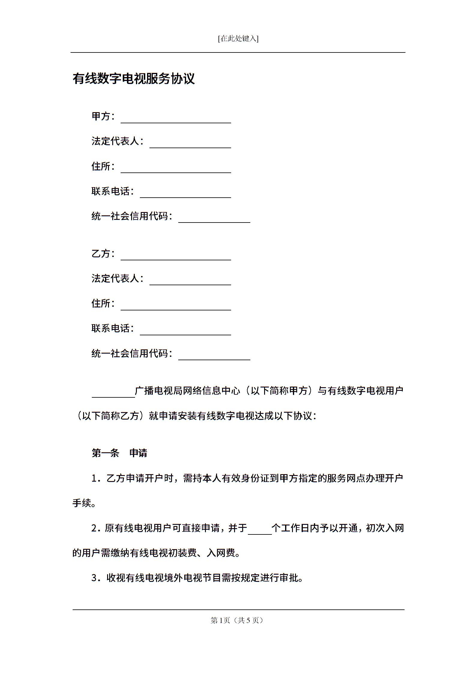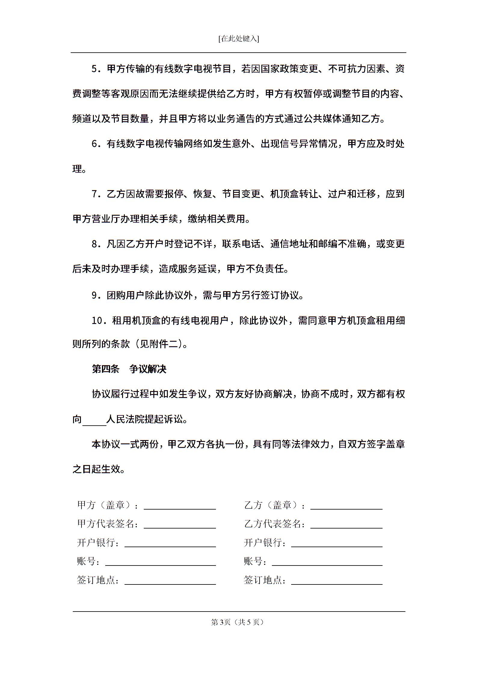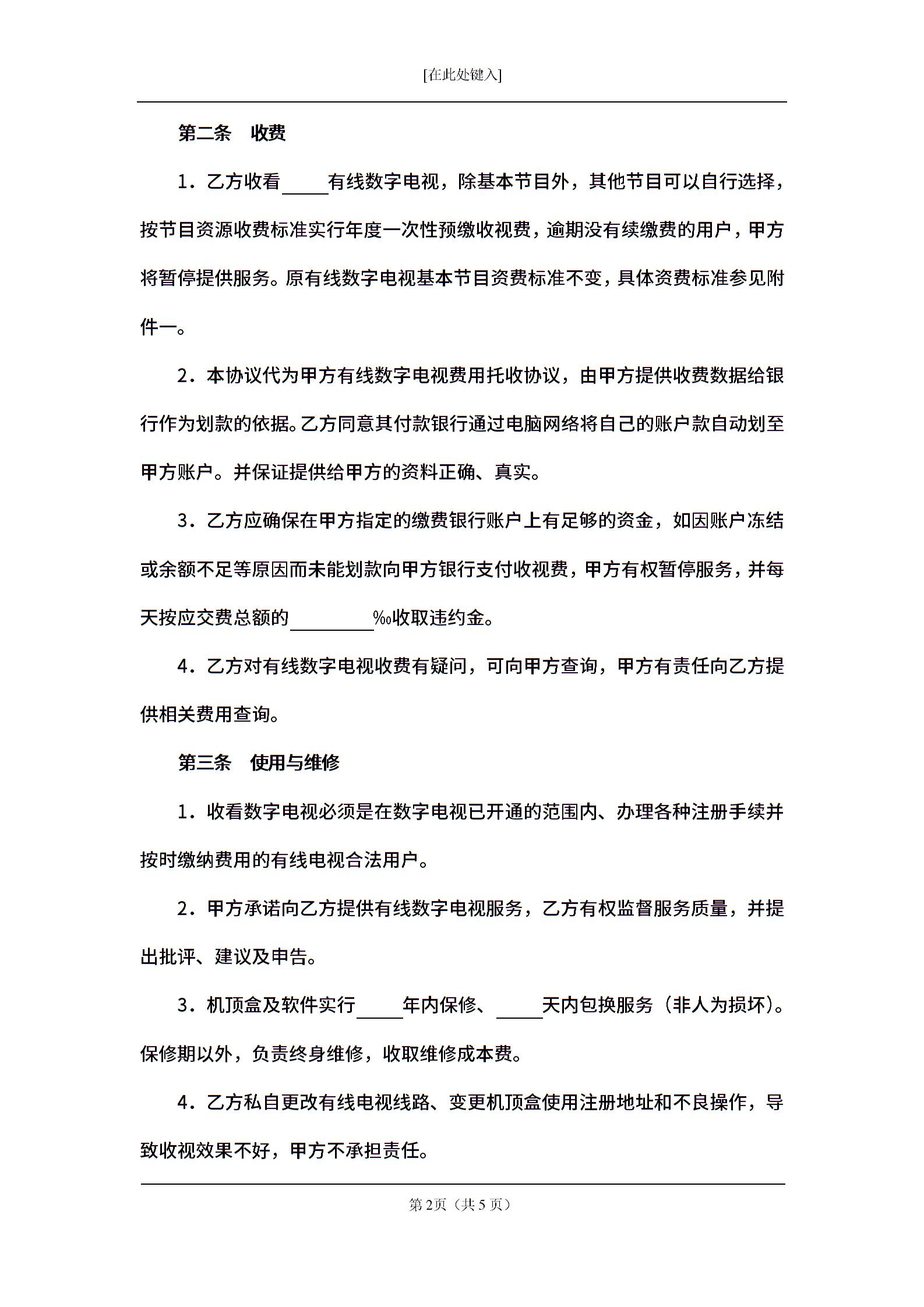 有线数字电视服务协议