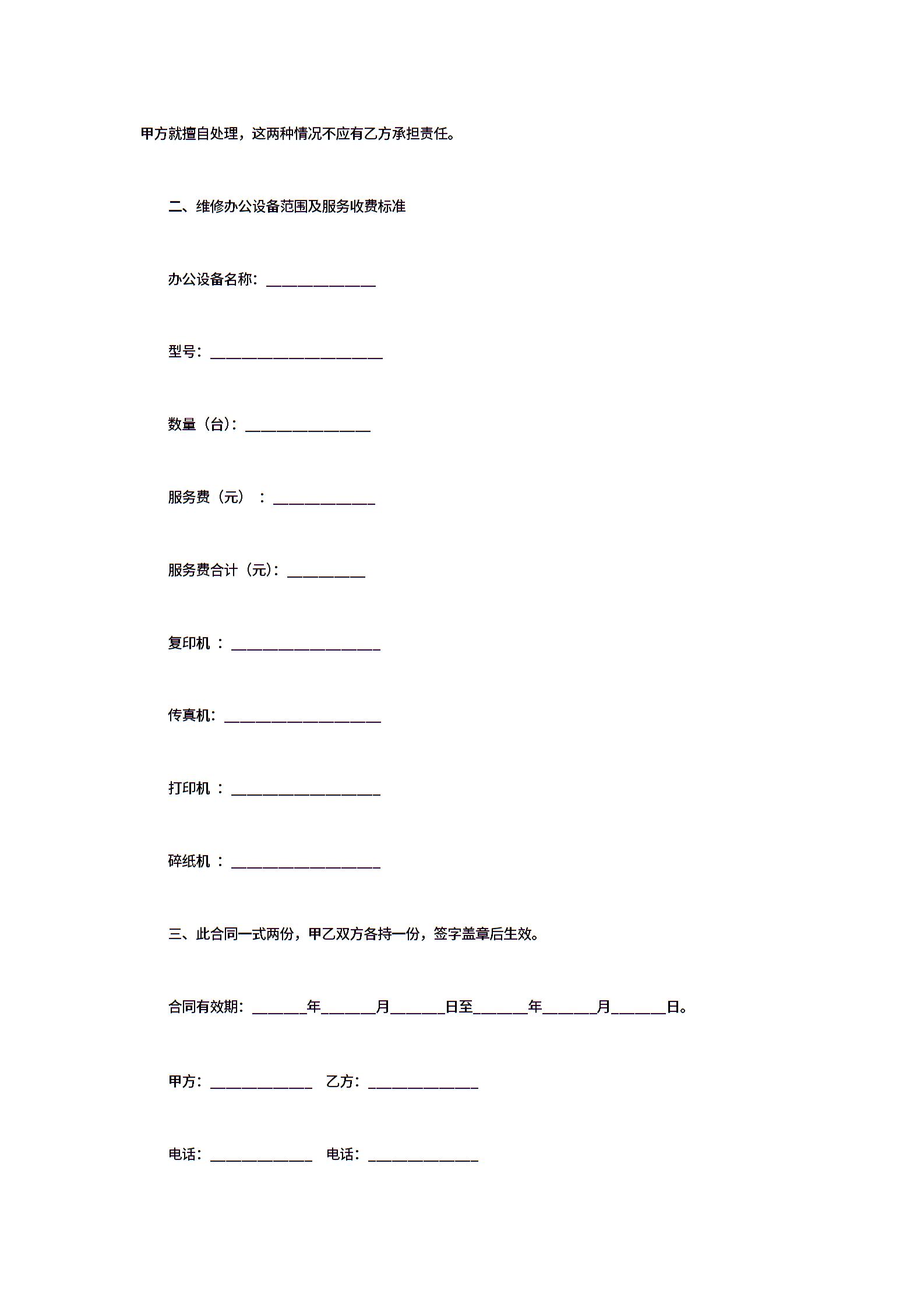 办公设备维修保养合同范文