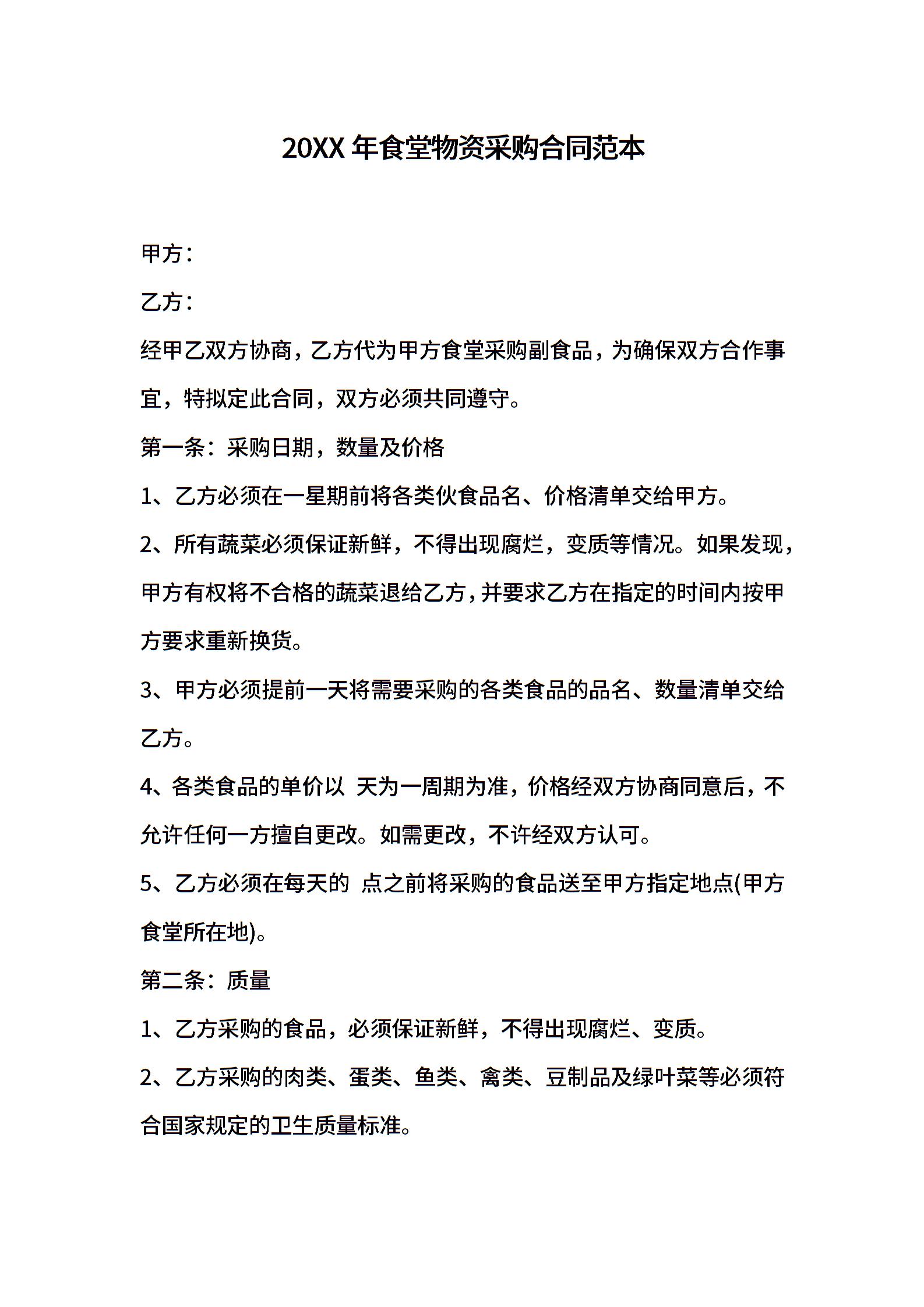 2021年食堂物资采购合同范本